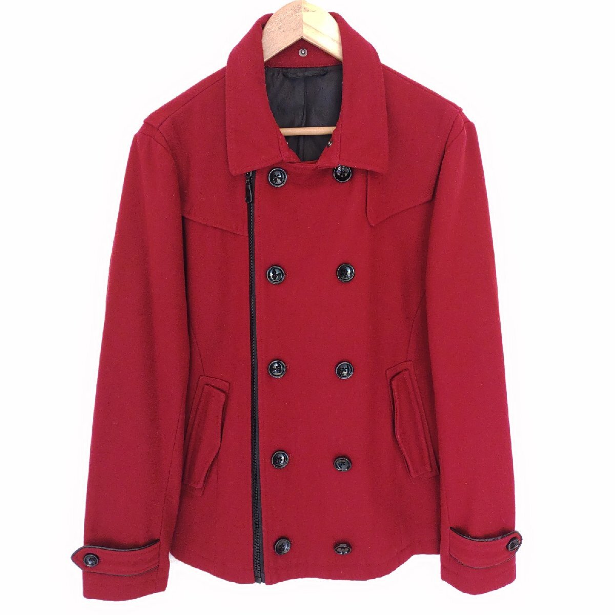 (^w^)b タカキュー semanticdesign セマンティックデザイン 長袖 ダブルボタン メルトン ジャケット ブルゾン アウター レッド LL O12595DD