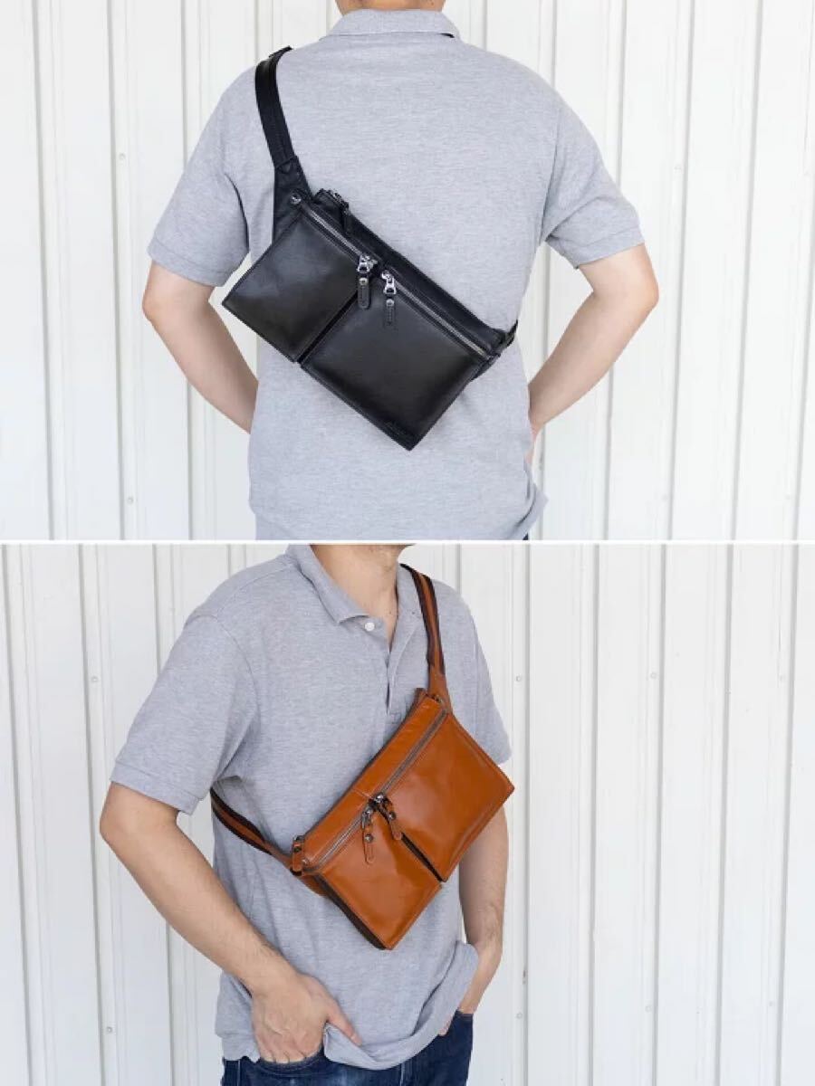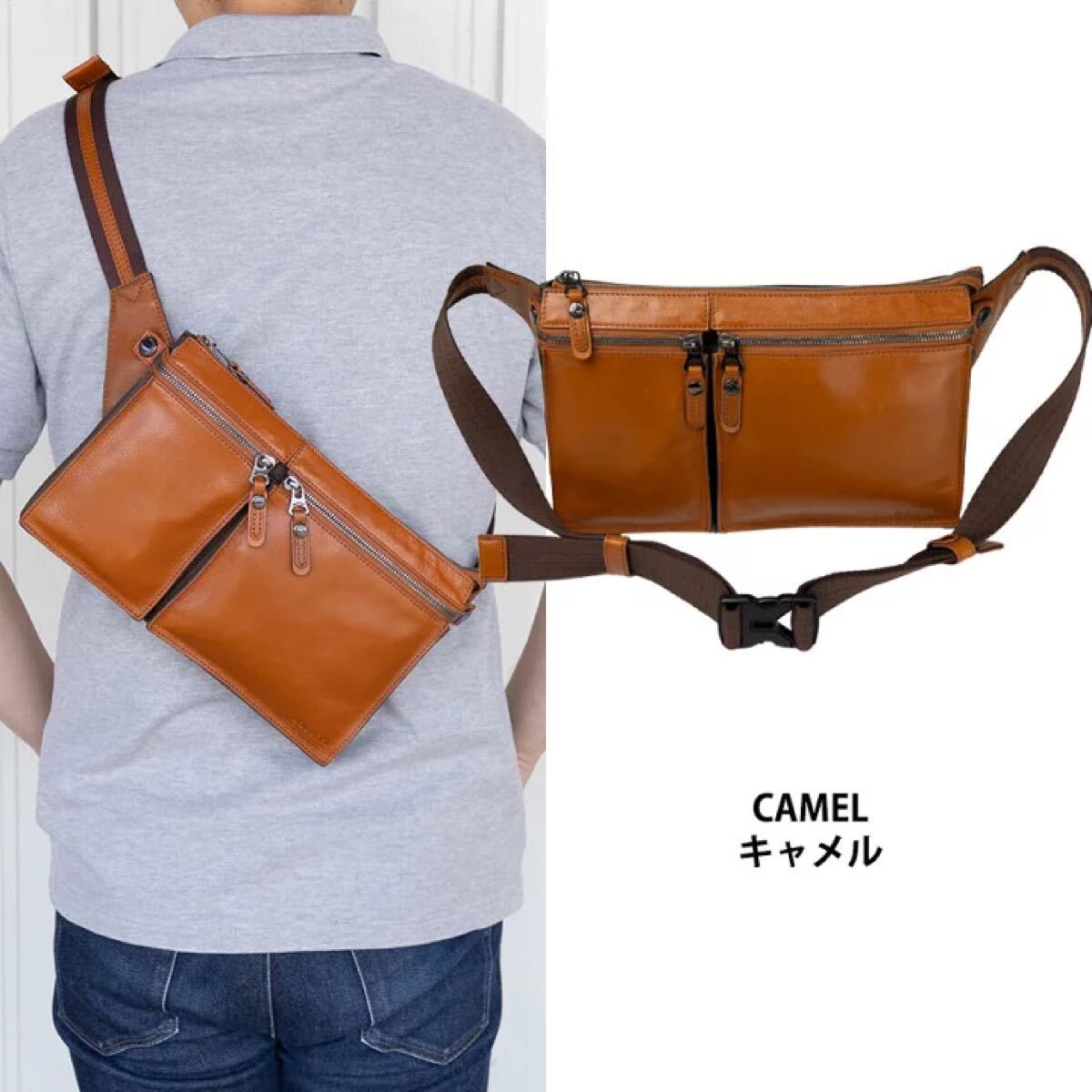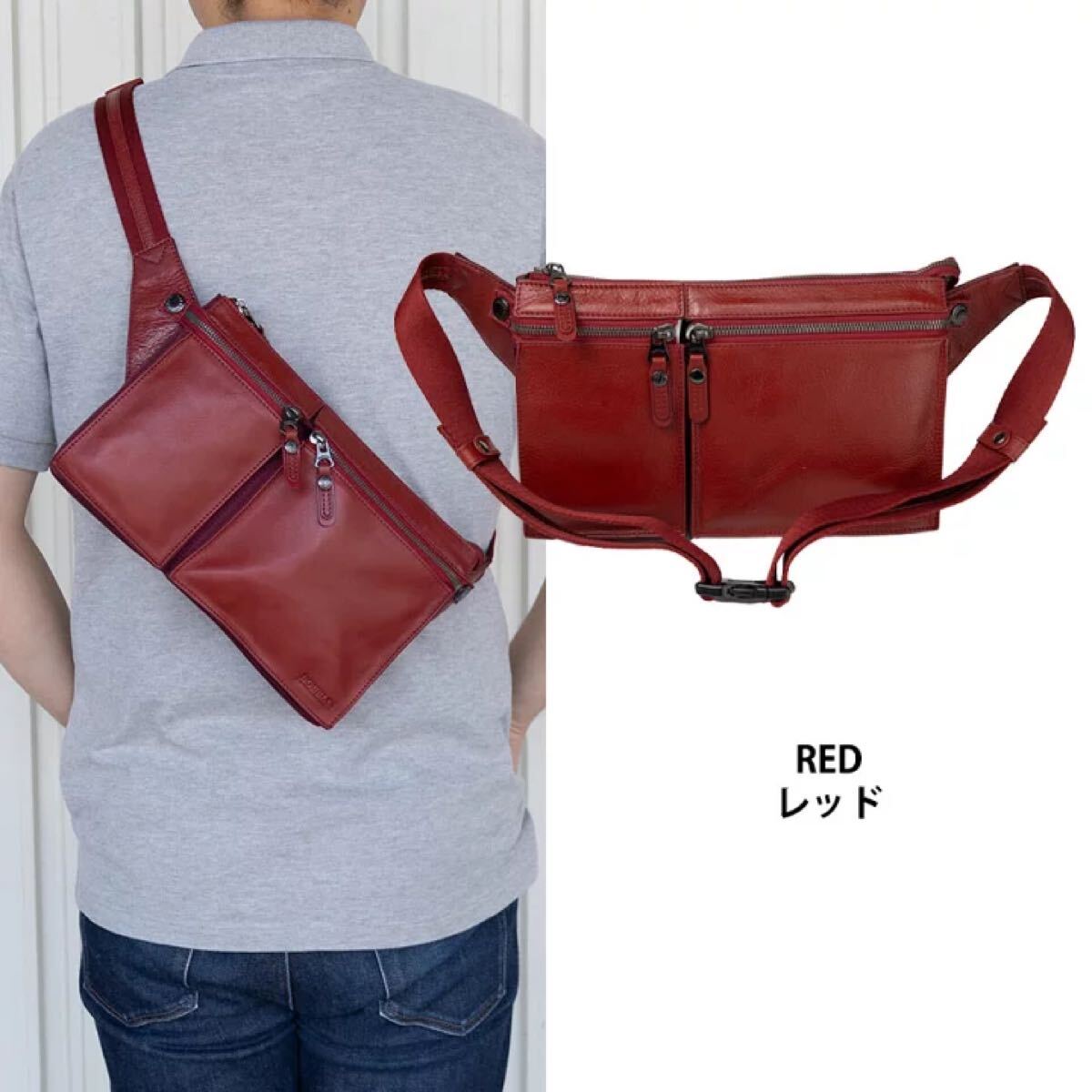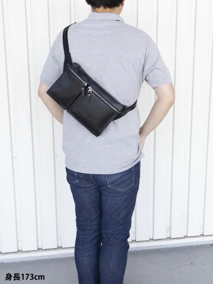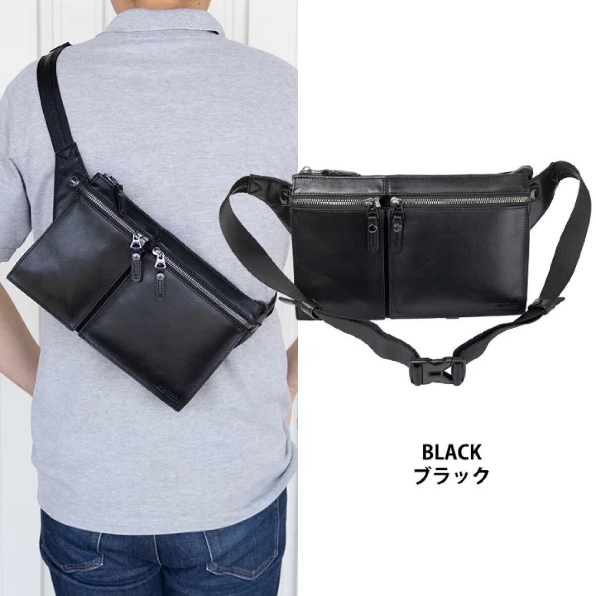 ●前面にスマホ等が収まるポケットを2つ配置した薄型のボディバッグです。スクエア型のシャープなデザインでバックル式ベルトなので腰に装着してウエストバッグにしたり斜めがけにしたり2WAYでお使いいただけます。