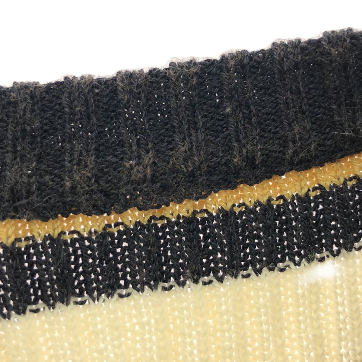 | 詳細 | 全体的に若干の生地のヨレと毛羽立ちがあります。首周りに若干の色褪せ有り。他、特に気になるようなダメージはございません。 |