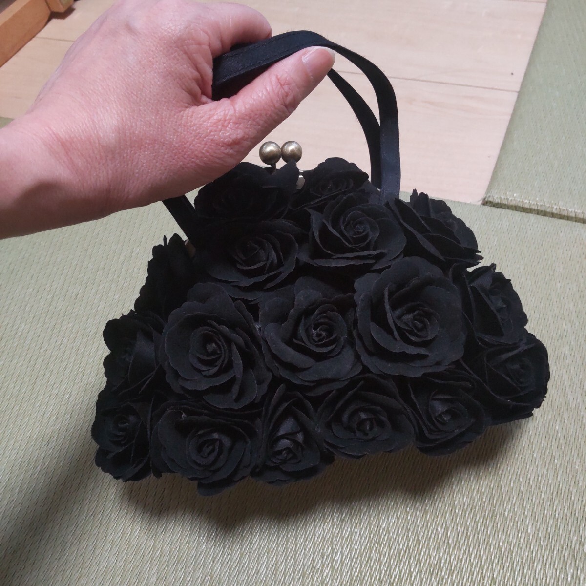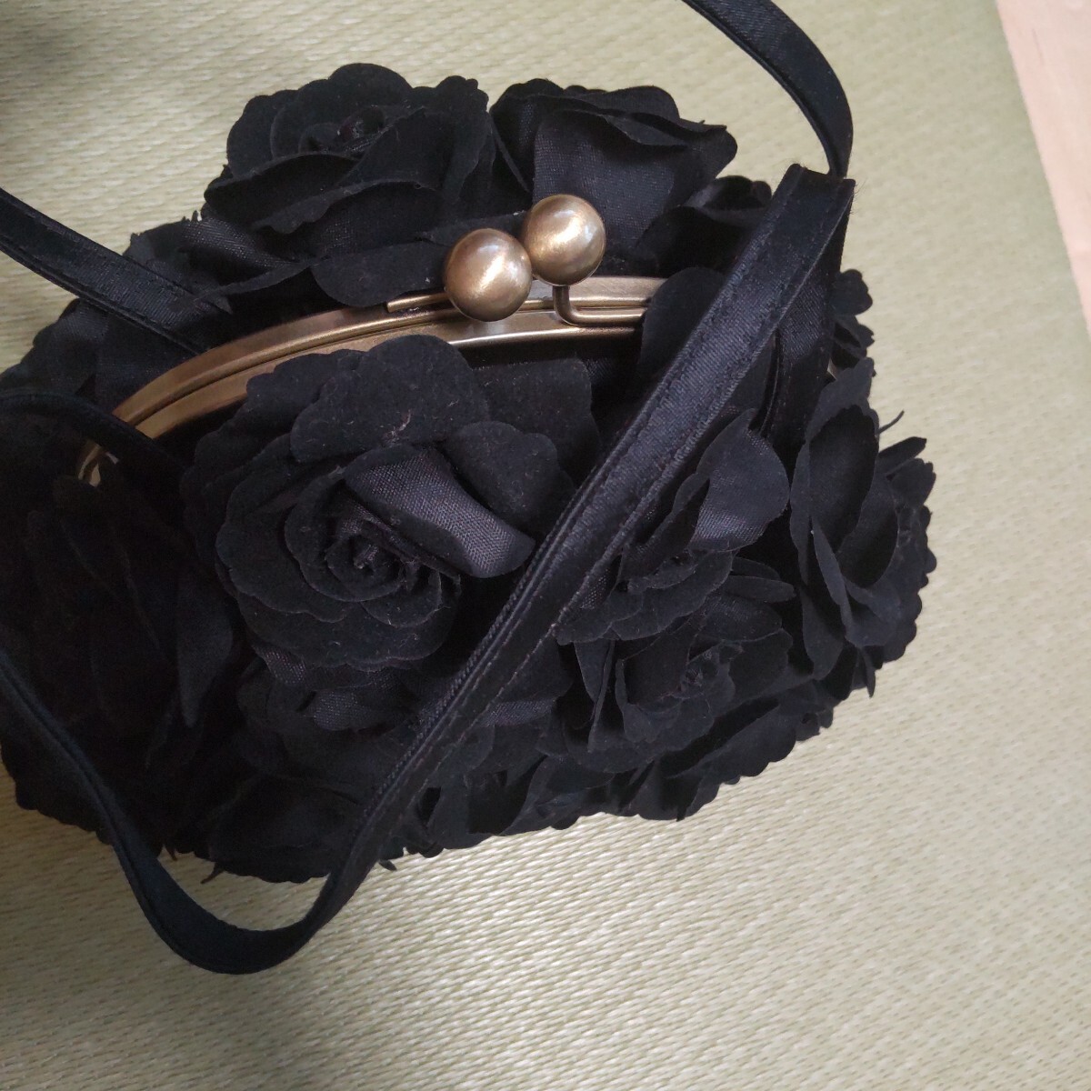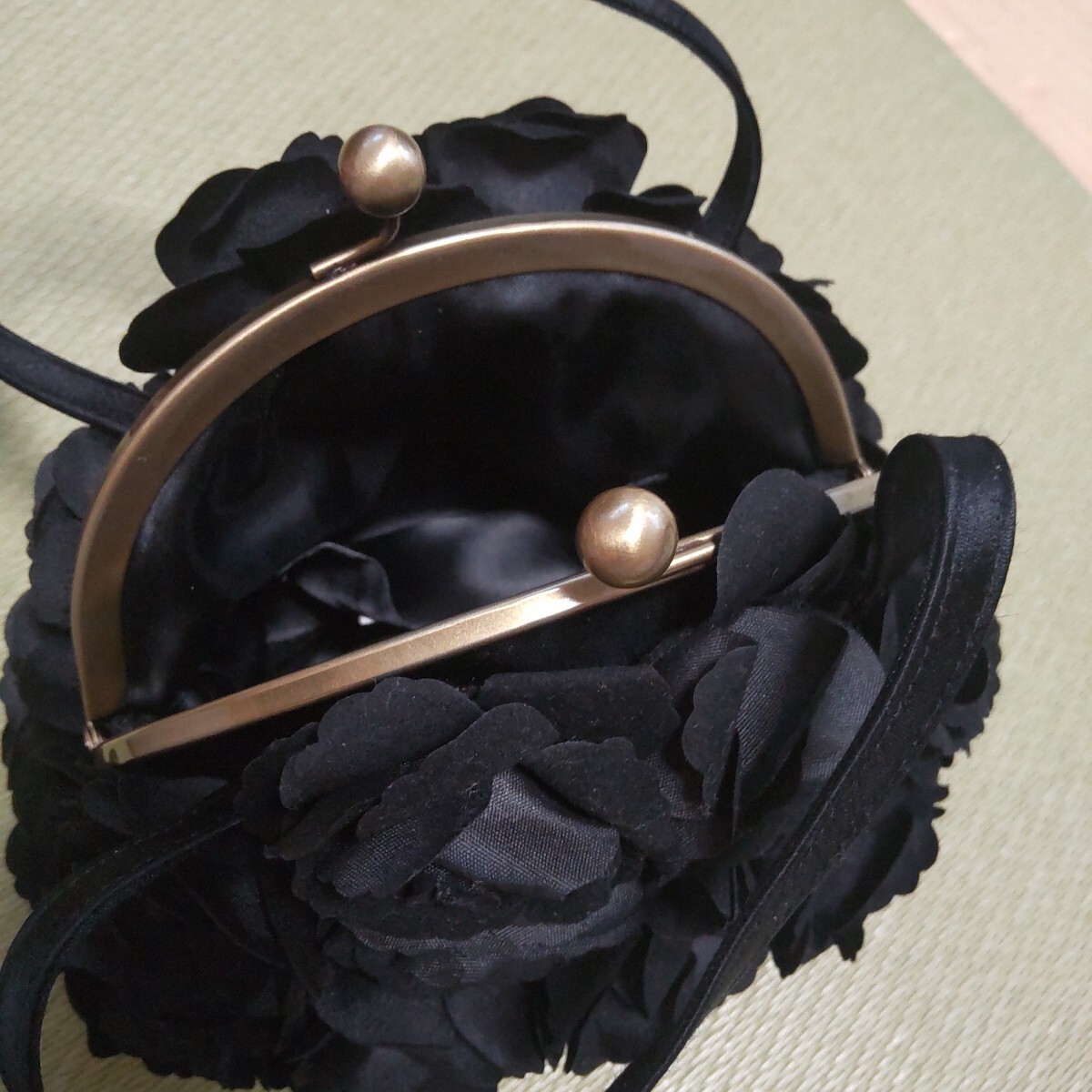 ダイアナ DIANA 黒 花 ミニバッグ がま口 結婚式 美品 中古