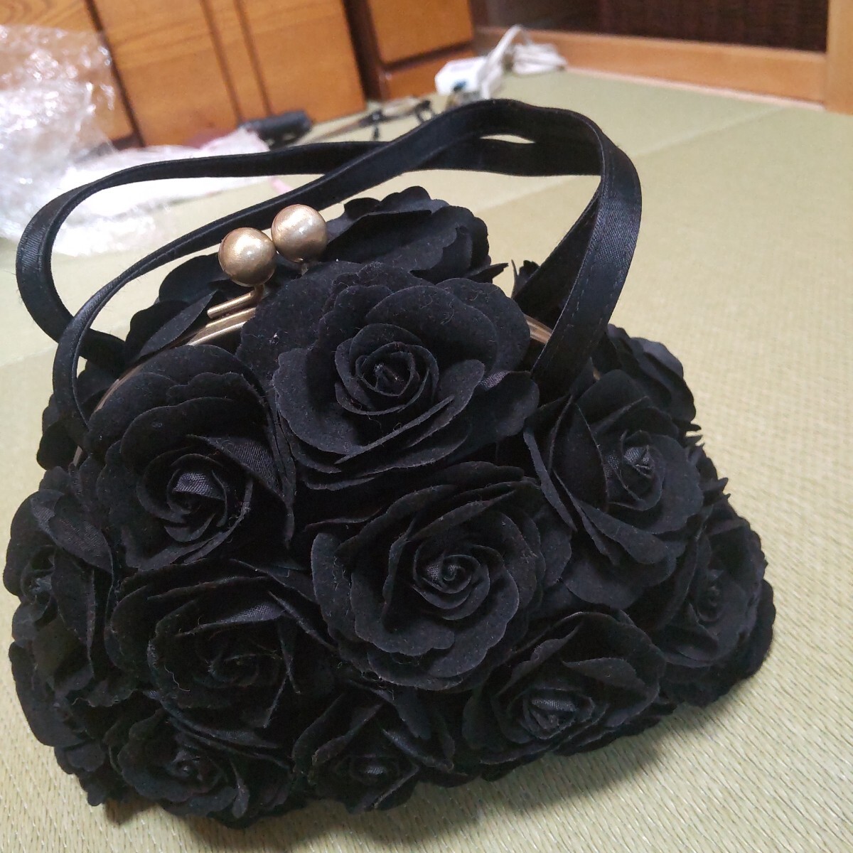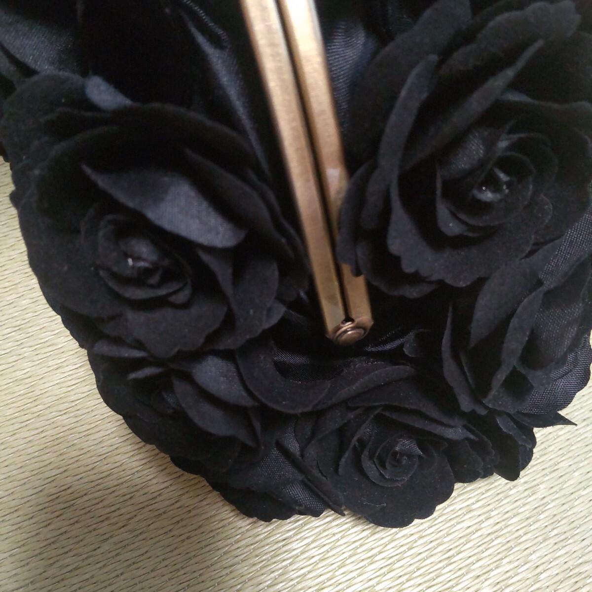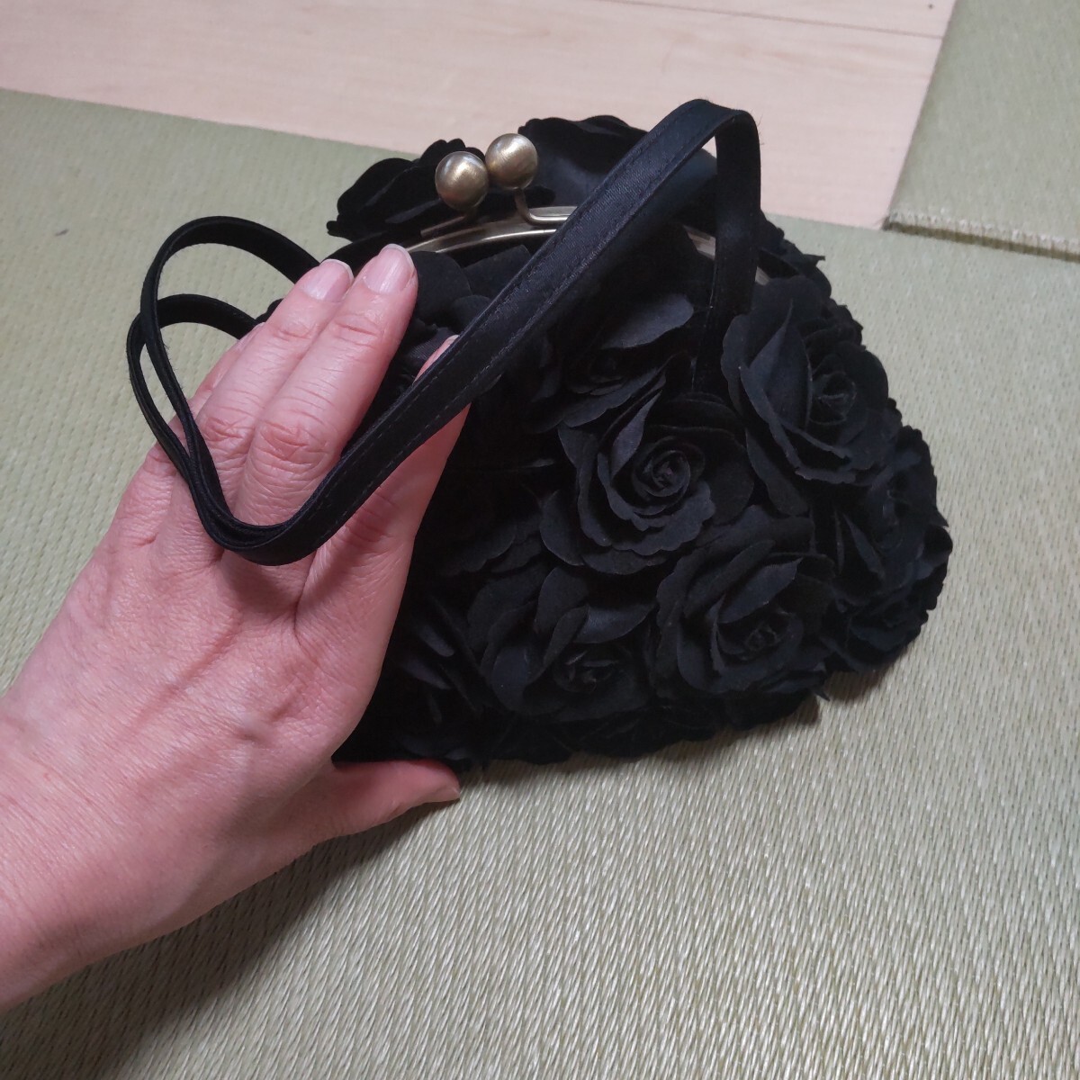 ダイアナ DIANA 黒 花 ミニバッグ がま口 結婚式 美品 中古