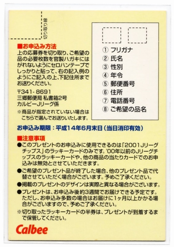 ラッキーカード【 カルビー Jリーグチップス2001 第1弾 】トレカ/応募券 ☆傷みあり