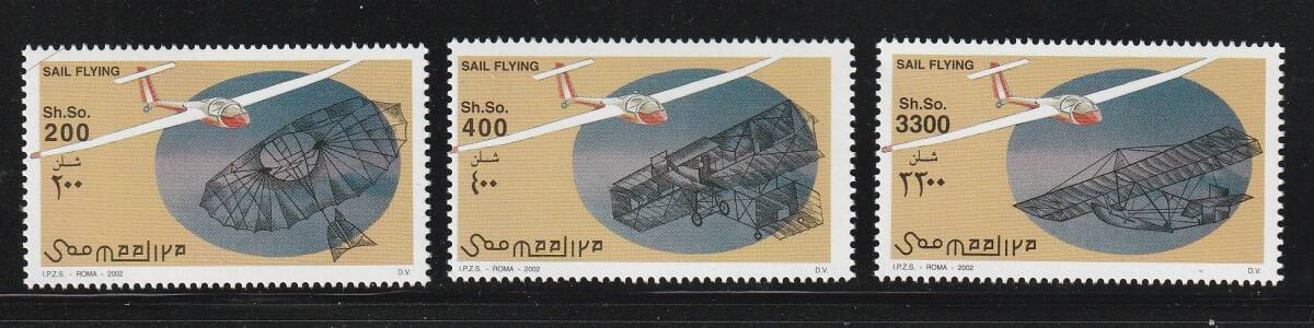 (ソマリア)2002年人力飛行機3種完、YVert & Tellier評価15ユーロ(海外より発送、説明欄参照)