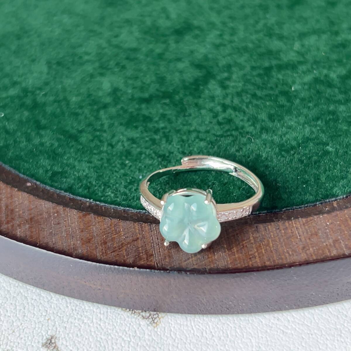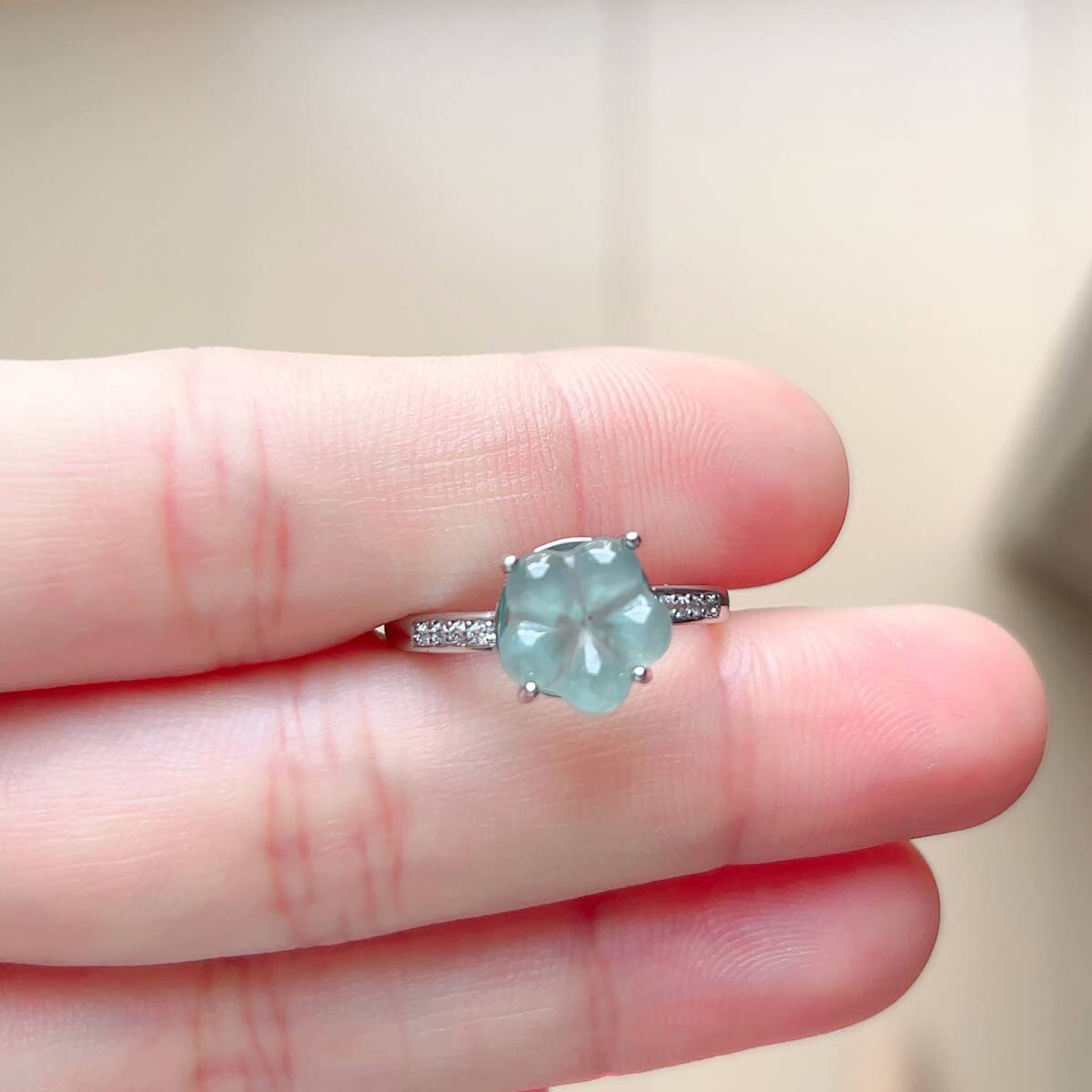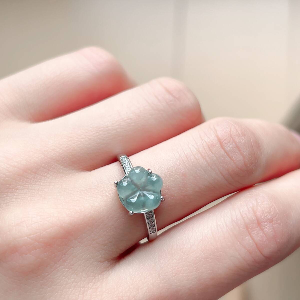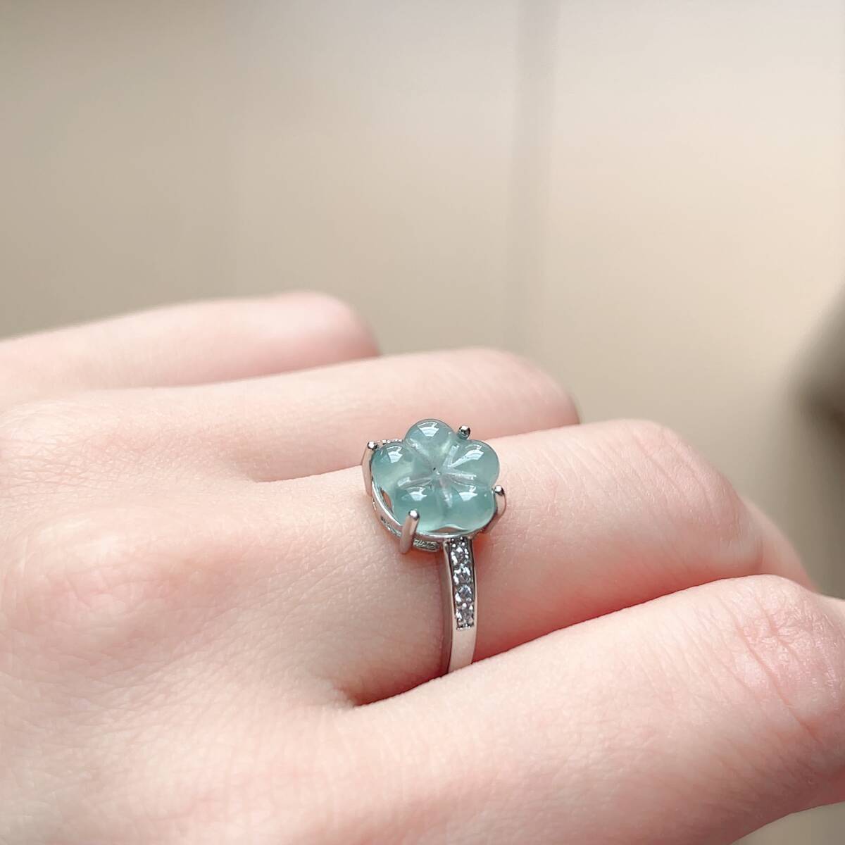 ♪ジェイド(本翡翠)♪指輪♪リング♪花形彫刻♪翡翠・ヒスイ♪フリーサイズ♪天然石♪パワーストーン♪巾着袋つき♪プレゼントにもR344185