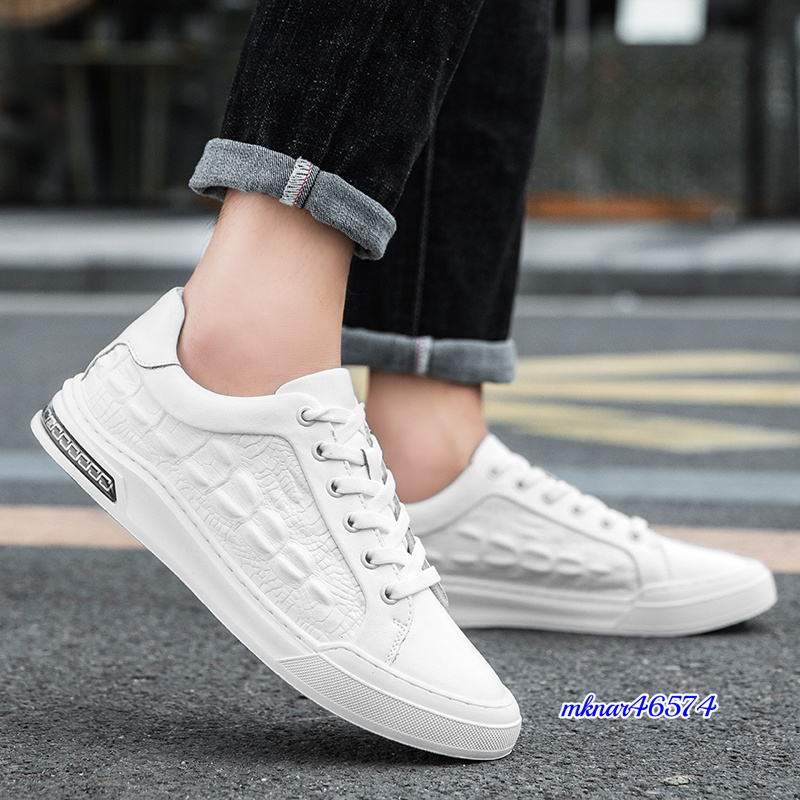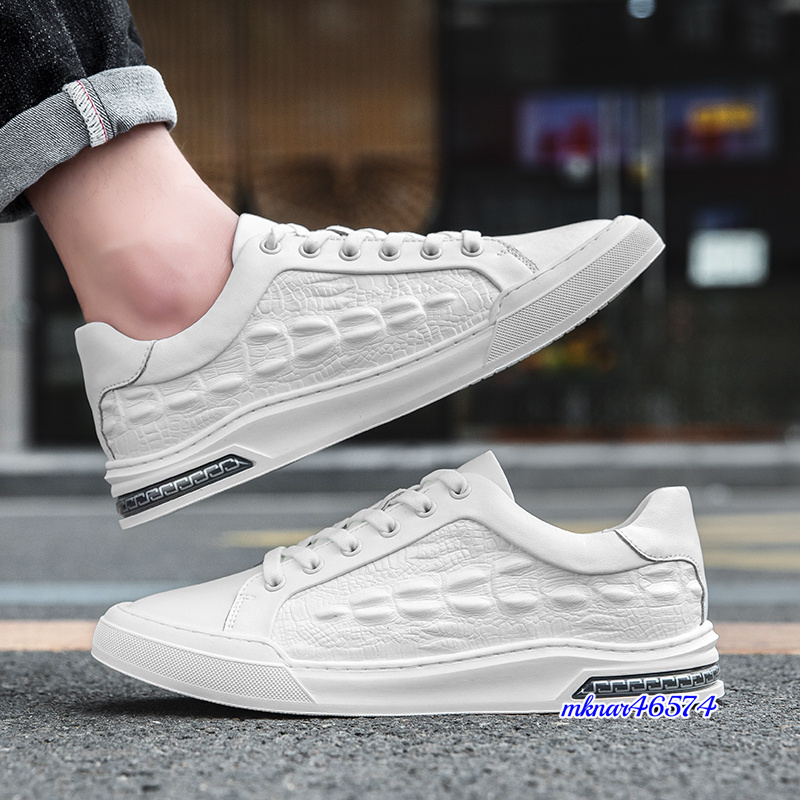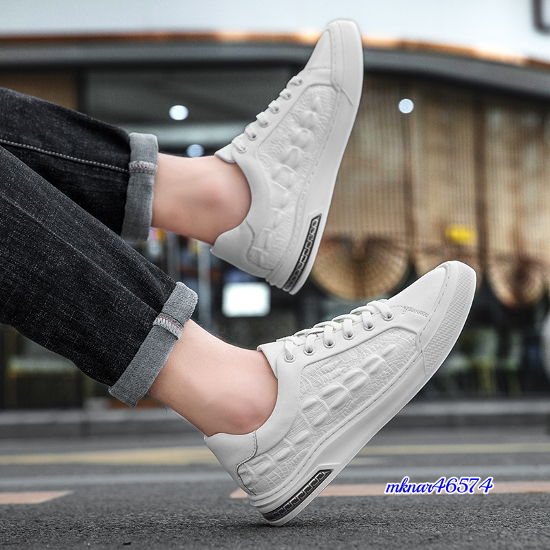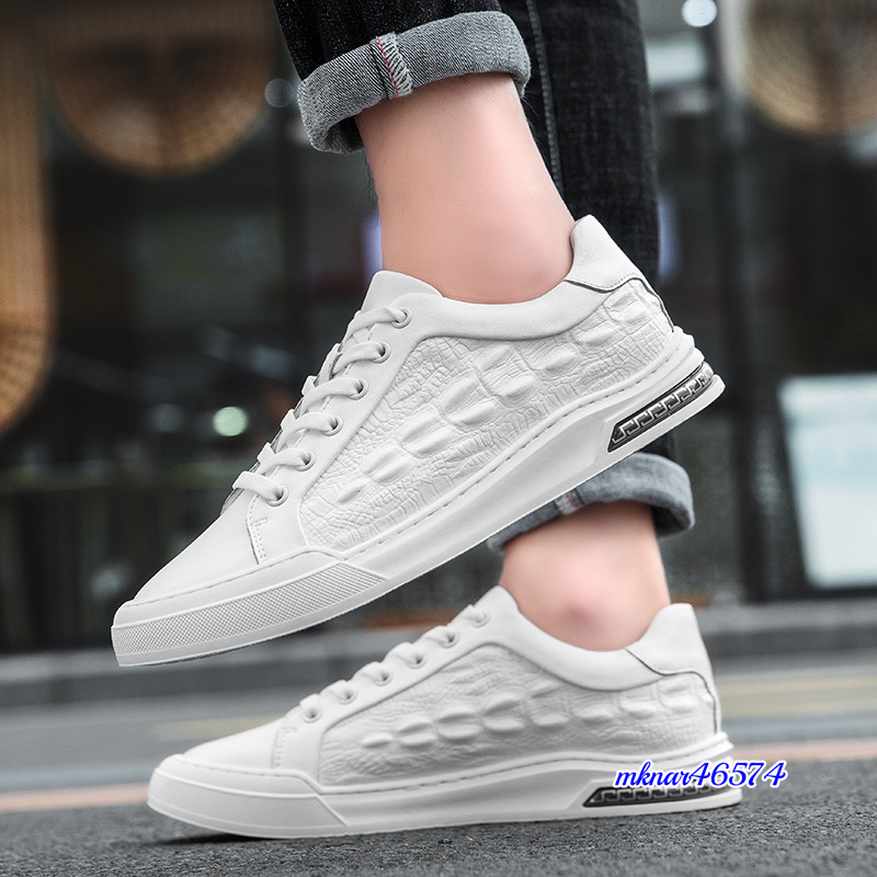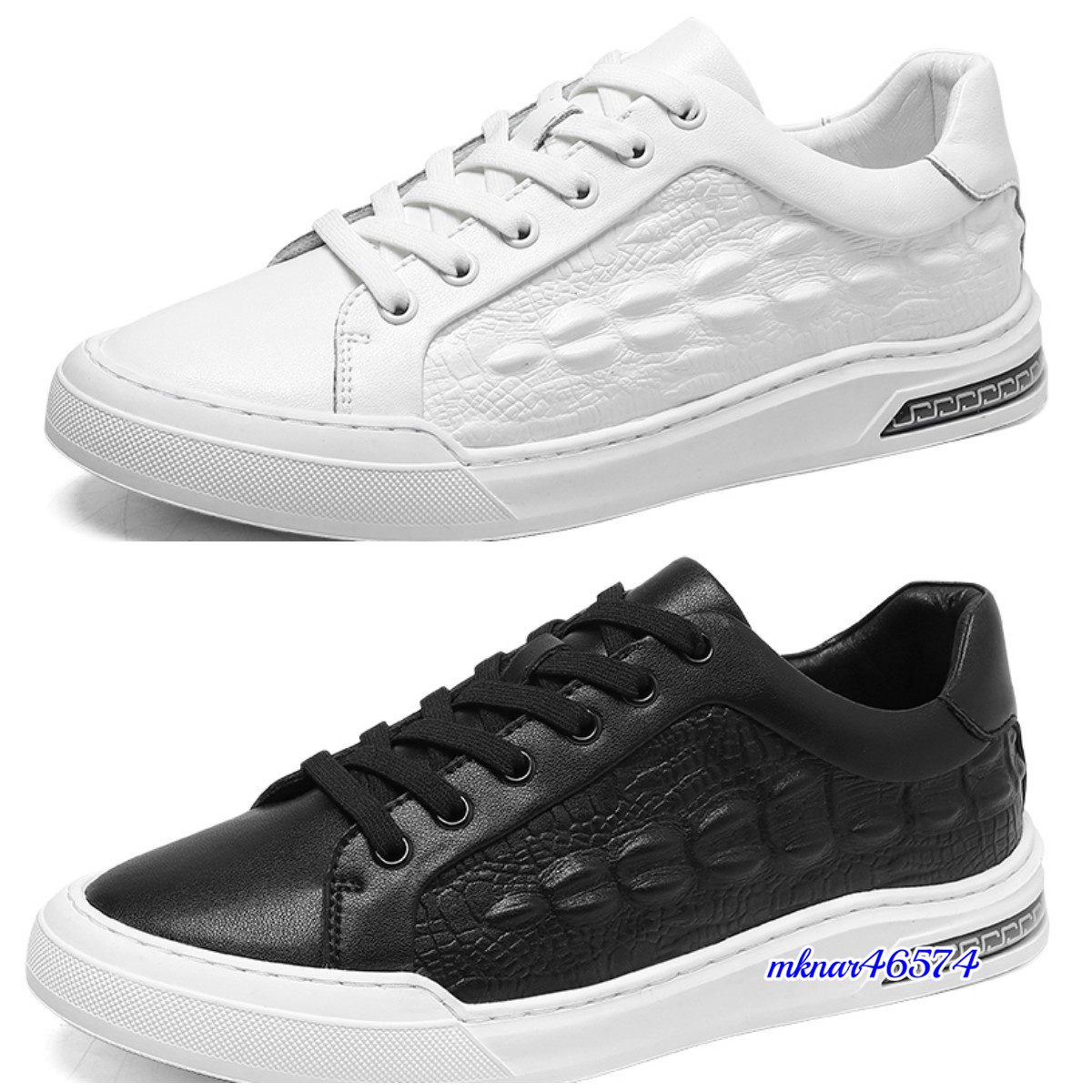 新品 シューズ メンズ スニーカー 本革 レザーシューズ 切替 鰐柄 ローファー スリッポン ドライビングシューズ 26cm ホワイト