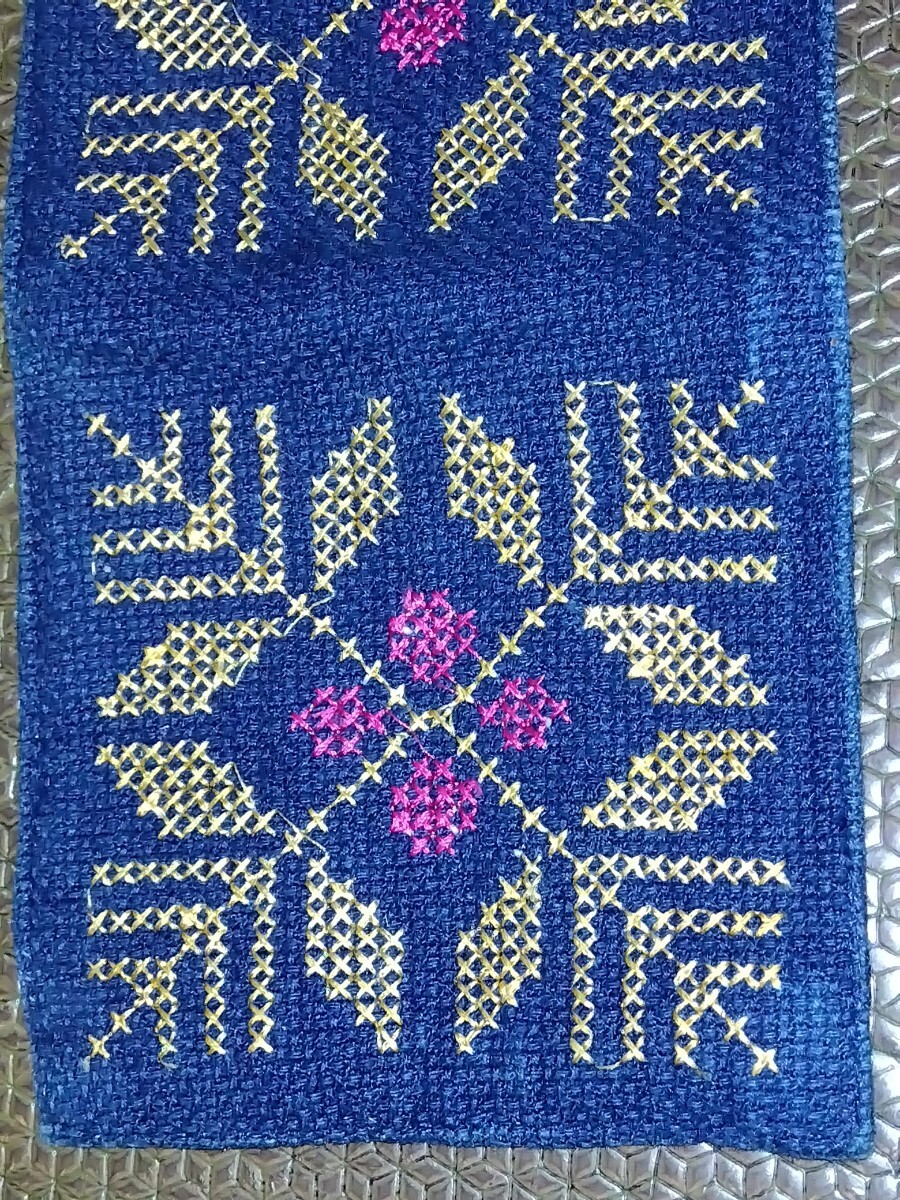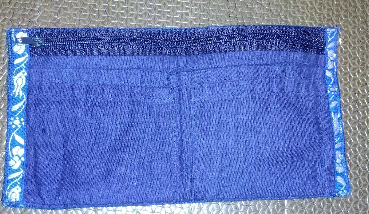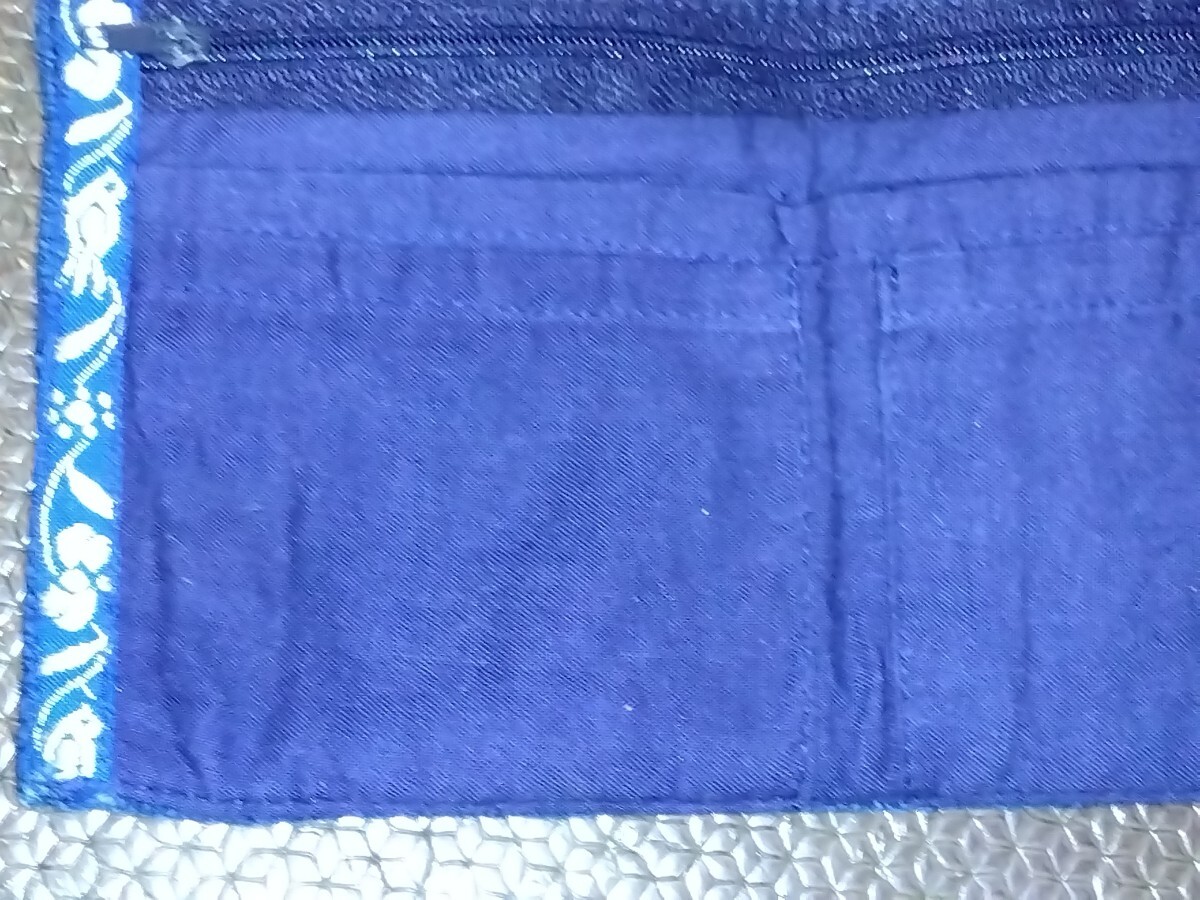 ☆布製  紺系色 刺繍入り 二つ折り 財布 横 約20㎝ 縦 約10㎝☆