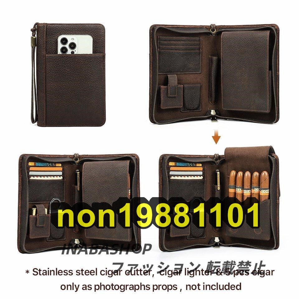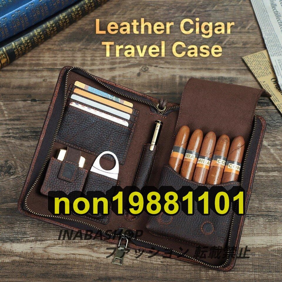 葉巻ケース シガーケース 保湿 携帯 喫煙器具 レザー 皮サック 5本用 本革製品 ポータブル 父の日 贈り物 プレゼント 牛革ケース
