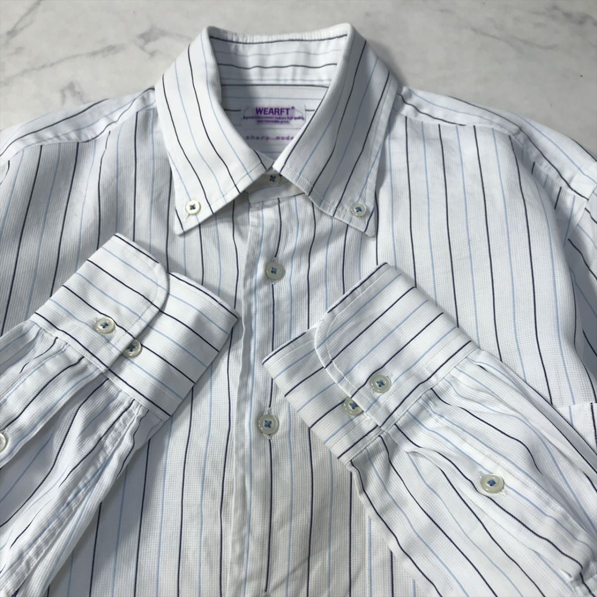 《オススメ◎》WEARFT ウエフト★日本製*ストライプ*ボタンダウンシャツ*ホワイト/ネイビー/スカイブルー*サイズM(MA8142)◆S60