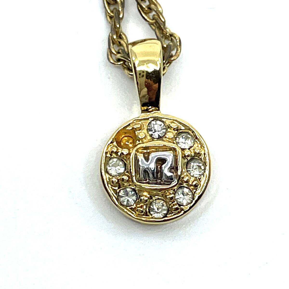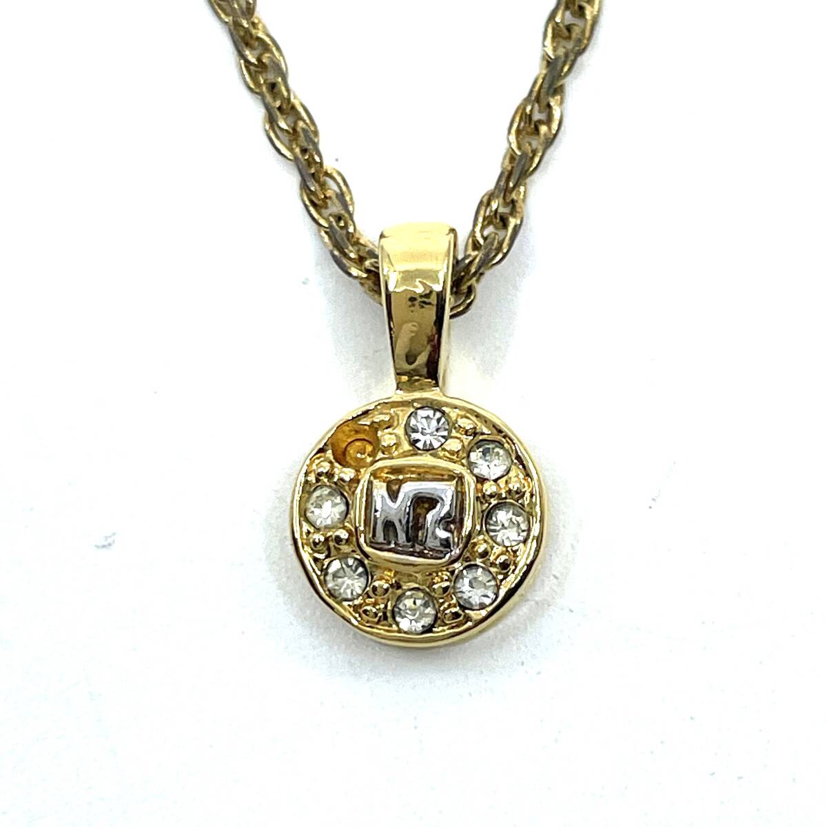 NINA RICCI ニナリッチ ゴールド×シルバー コンビ ネックレス ラウンド ラインストーン ロゴ エレガント ラグジュアリー