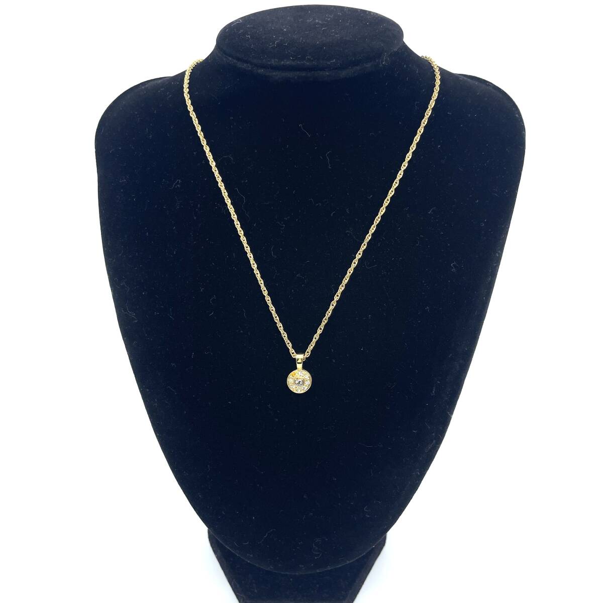 ゴールド×シルバー コンビ ネックレス ラウンド ラインストーン ロゴ エレガント ラグジュアリー