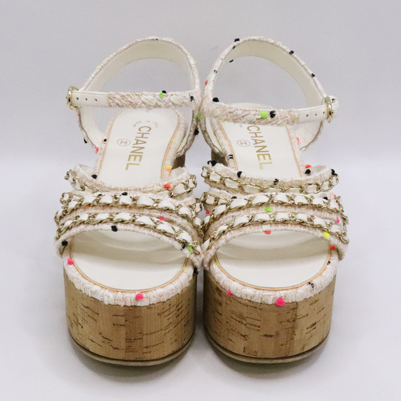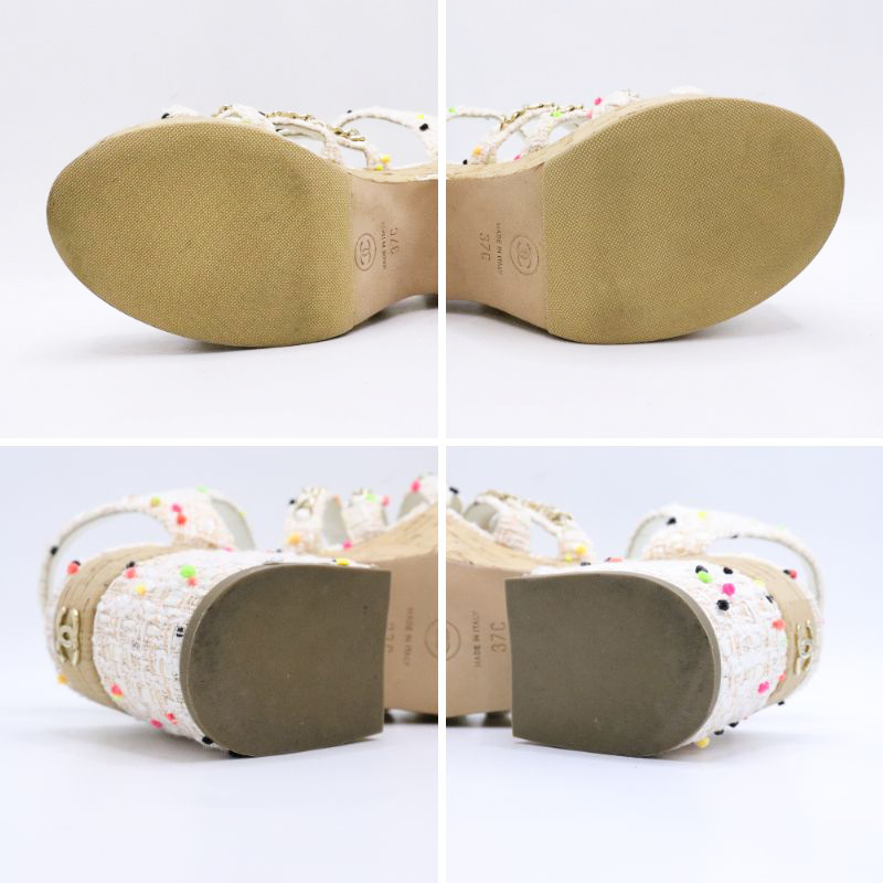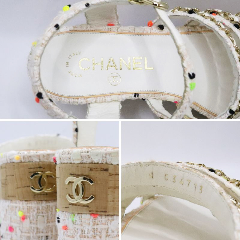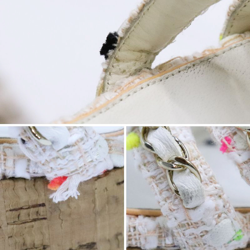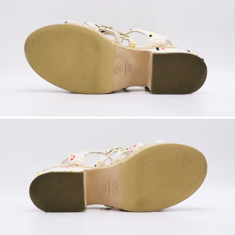 CHANEL シャネル マルチカラー ツイード サンダル #37C 23.5cm ホワイト G34713 中古美品 保管品 送料無料!!