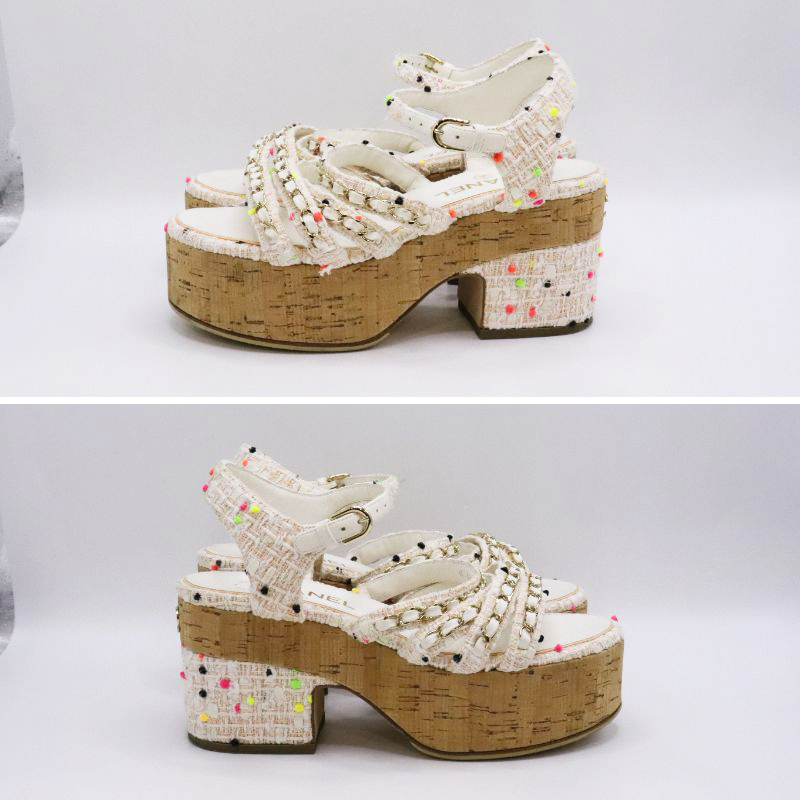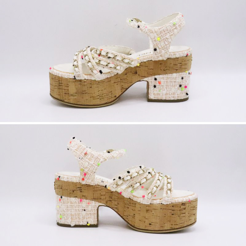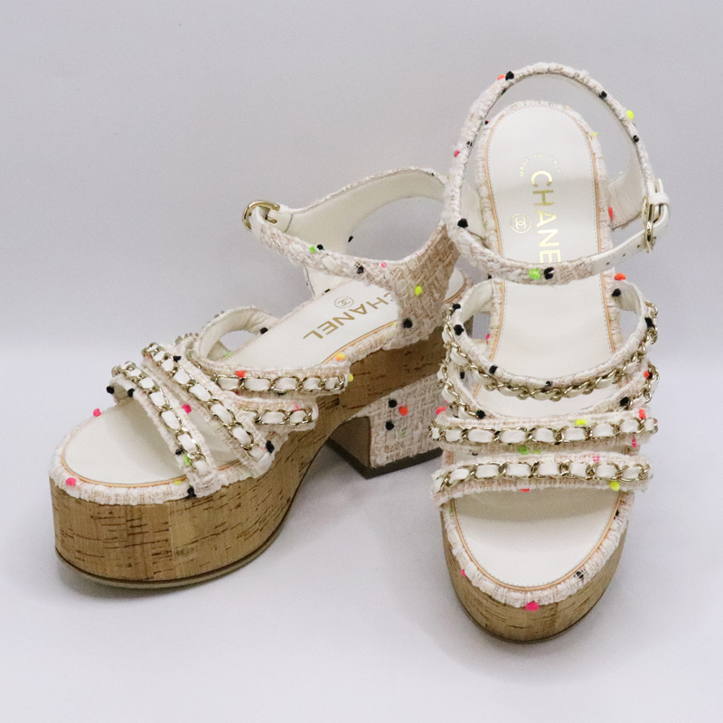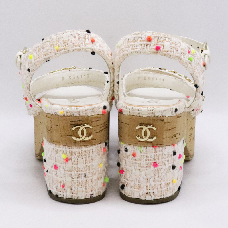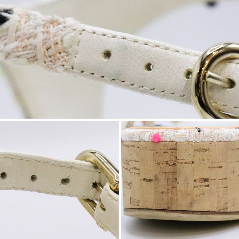 CHANEL シャネル マルチカラー ツイード サンダル #37C 23.5cm ホワイト G34713 中古美品 保管品 送料無料!!