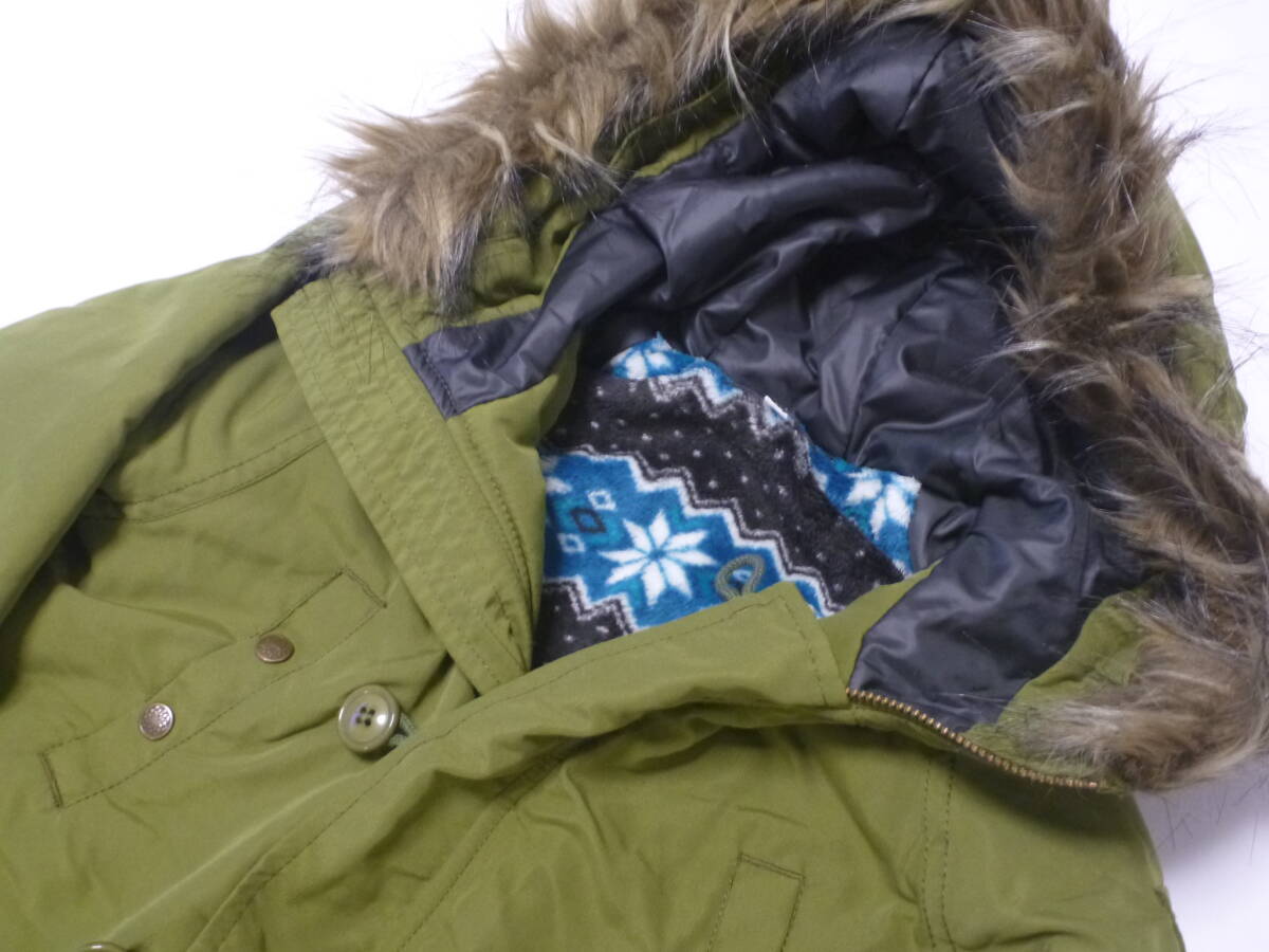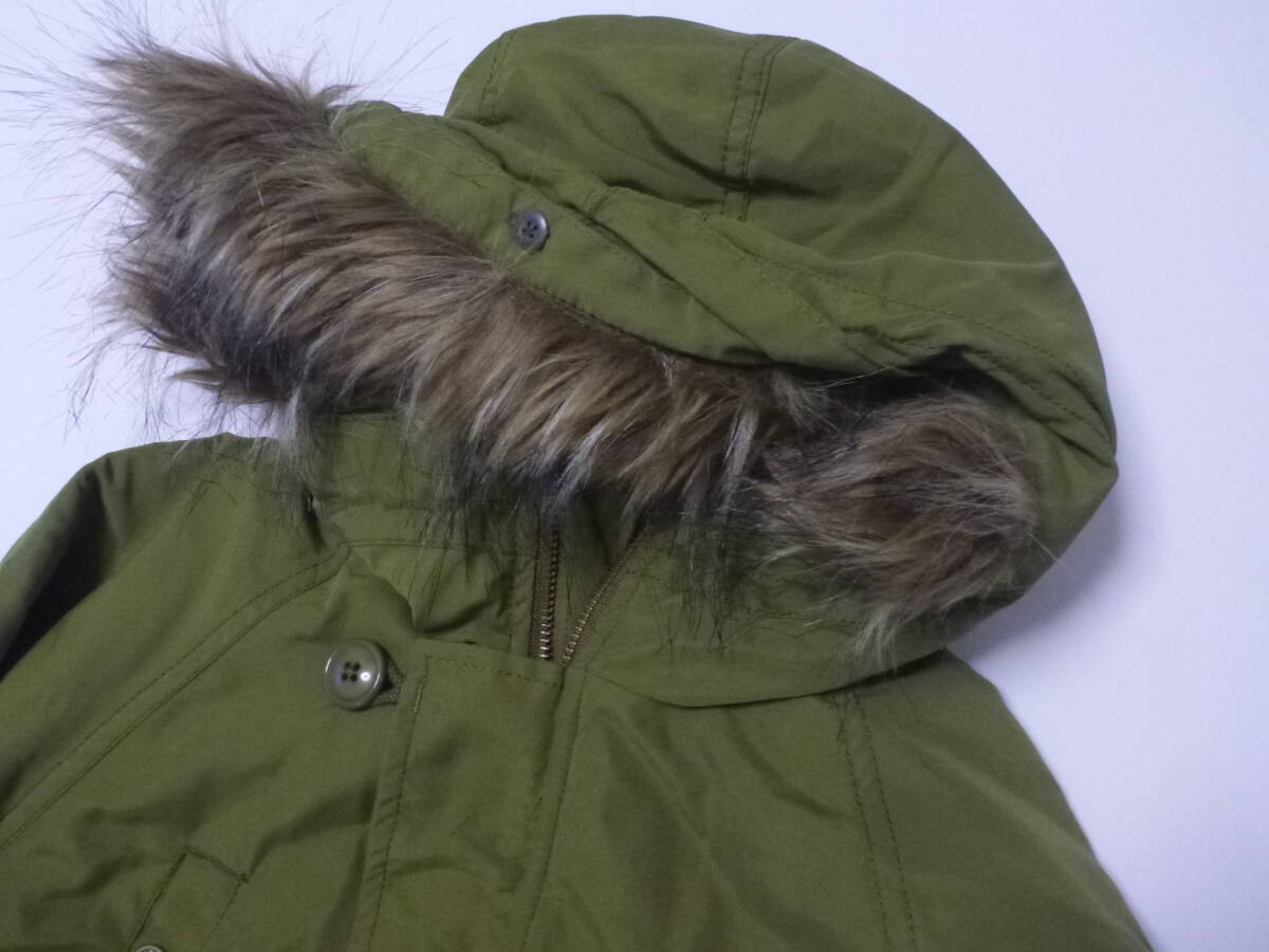 超美品 BeBe ベベ ★カーキ 裏地フリース ジャケットコート ファー取外し可能 コート130