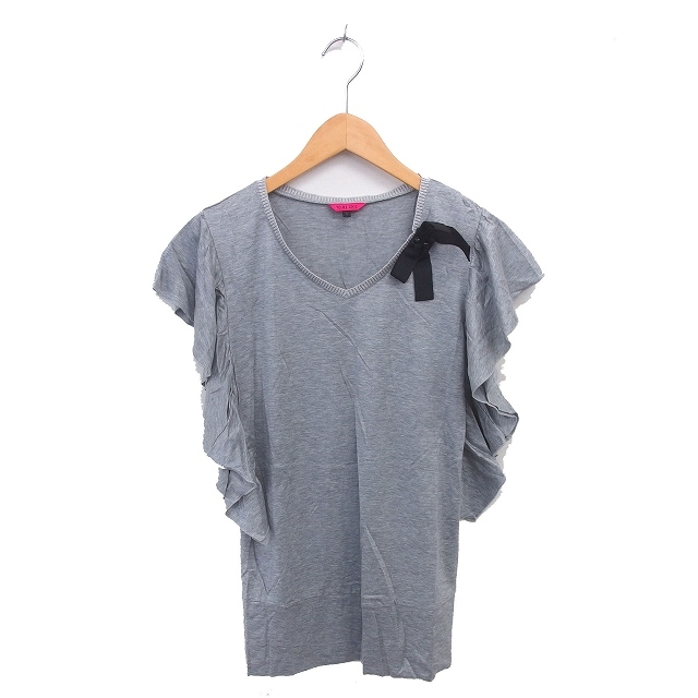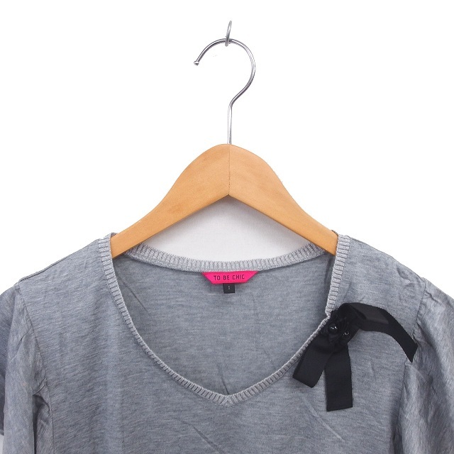 トゥービーシック TO BE CHIC チュニック フリル Vネック リボン プルオーバー 半袖 1 グレー /TT レディース