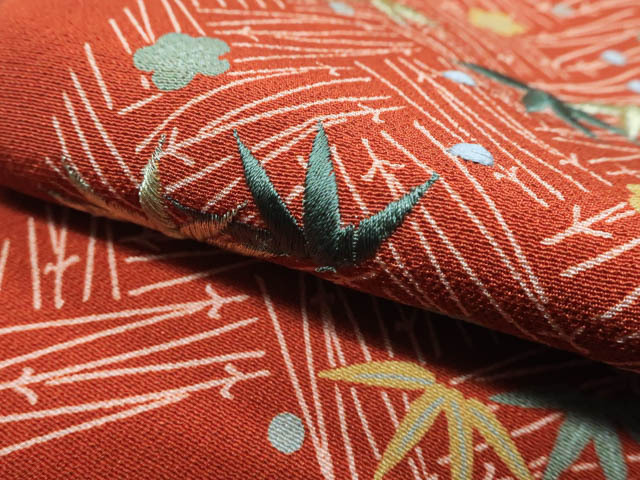 《古美術京松》【着物】和装小物 半衿 刺繍 笹文 未仕様品 r7w04-1629