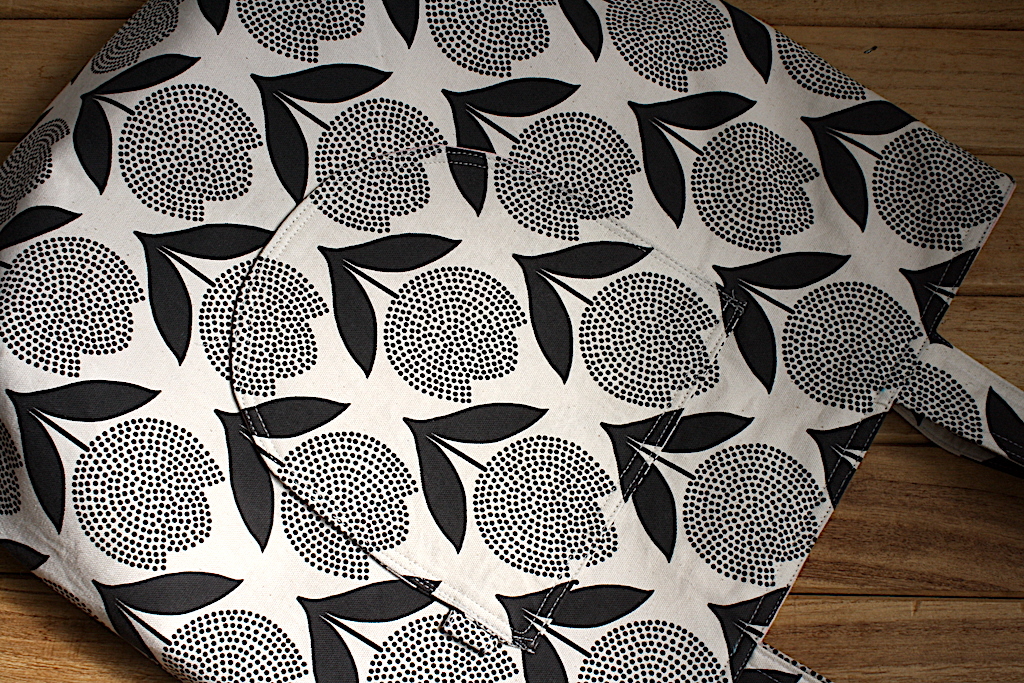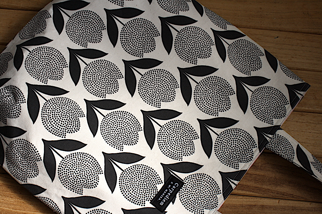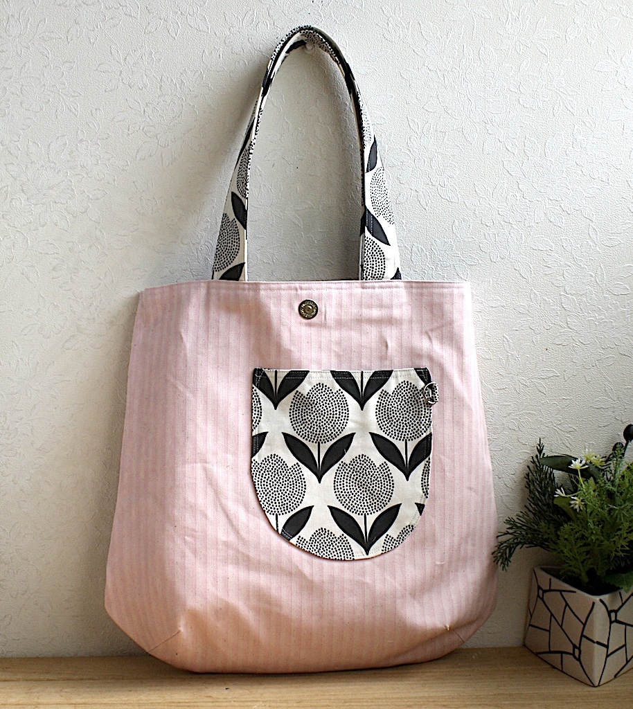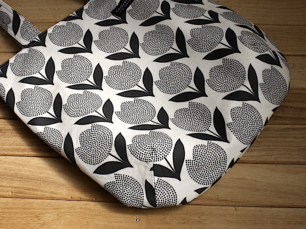 ★★肩掛け 大きめ ラウンドトートバッグ「モダンチューリップ ( シロ )」※表布に厚手接着芯貼付
