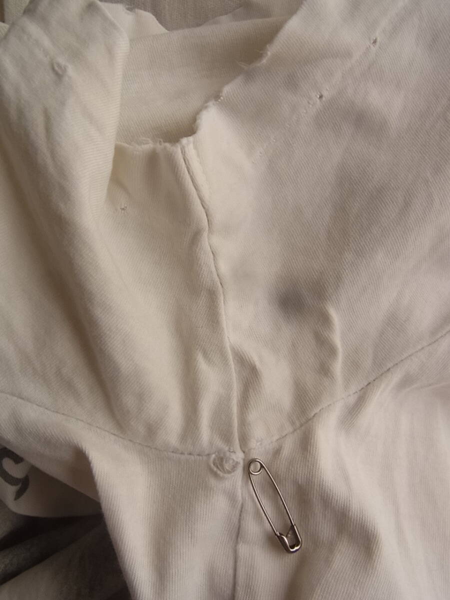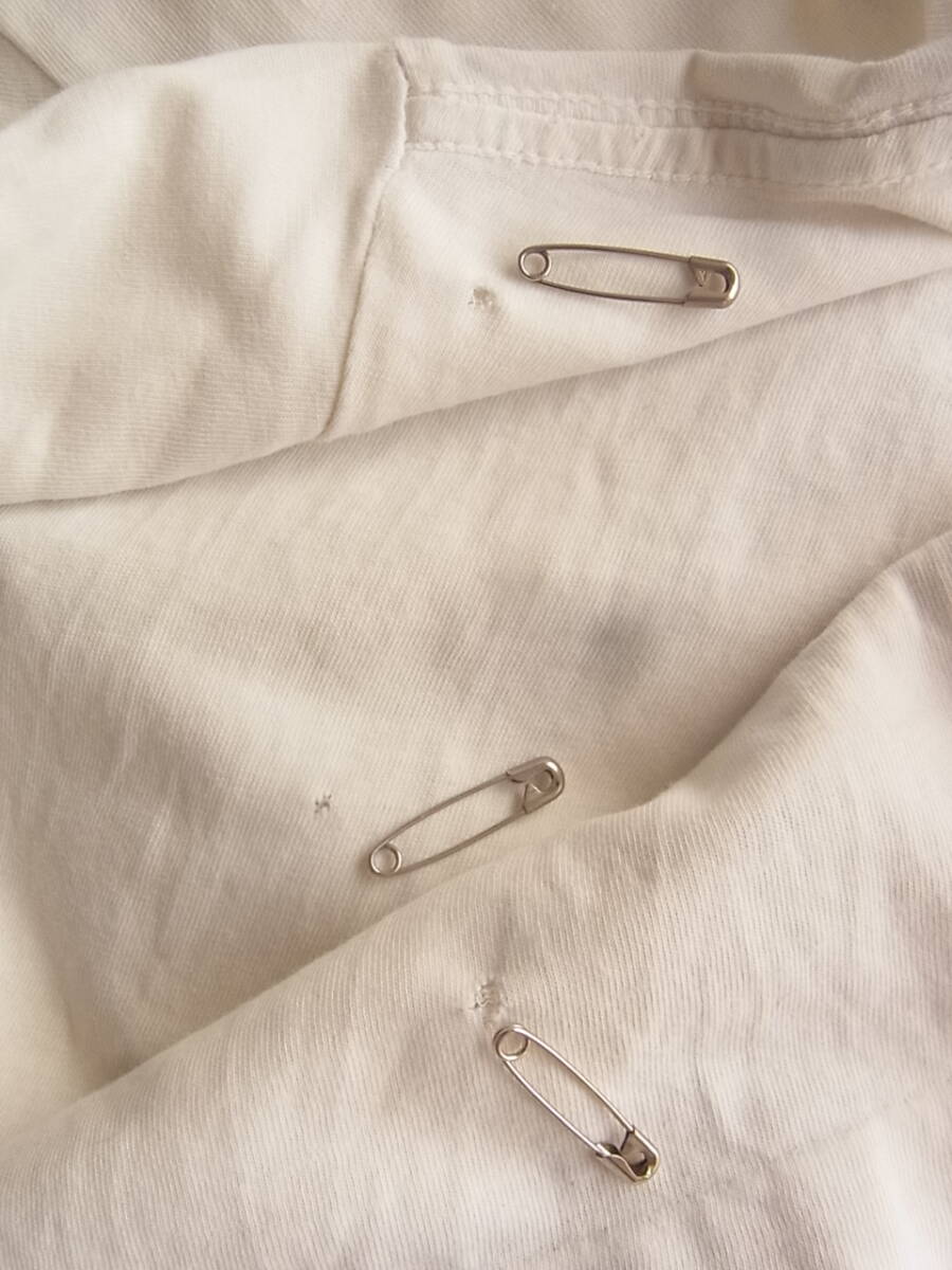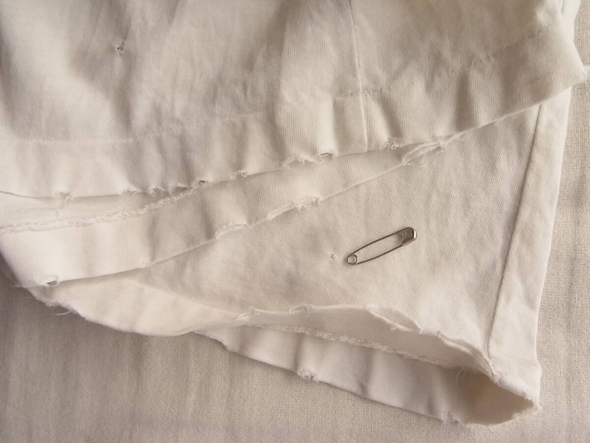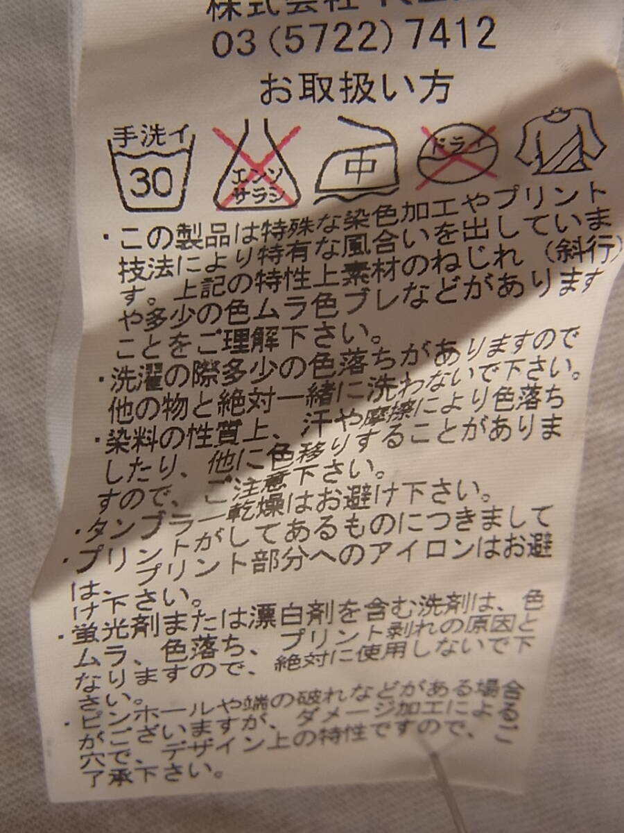 見頃、裾、袖口、衿リブ廻り、脇等にある色褪せ、穴、スレは元からの加工(10枚目の画像でご確認ください。)による物です。