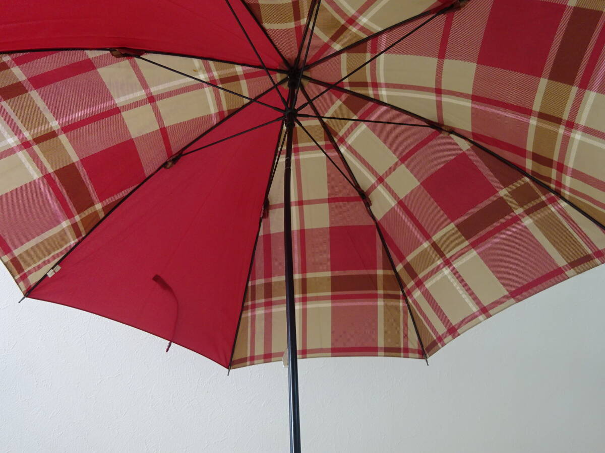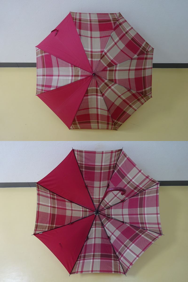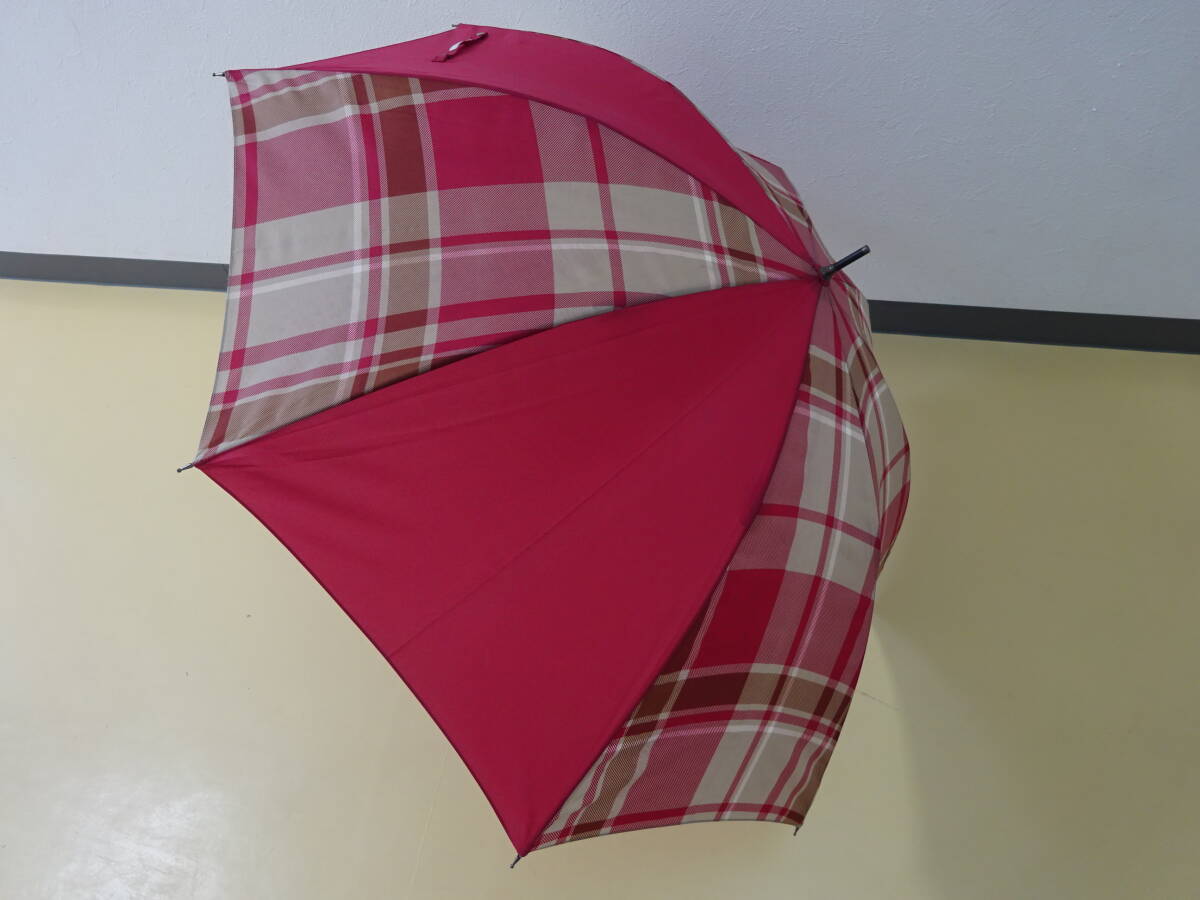 | (せ-A1-1072)studio CLIP スタジオクリップ 長傘 手開き式 チェック柄 レッド 赤 全長約84cm 半径約51cm 中古 | |