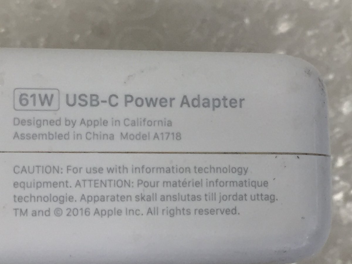 Apple 純正 USB-C電源アダプタ61W A1718 ケーブル 付き 中古動作品 (管:2C3-M5)