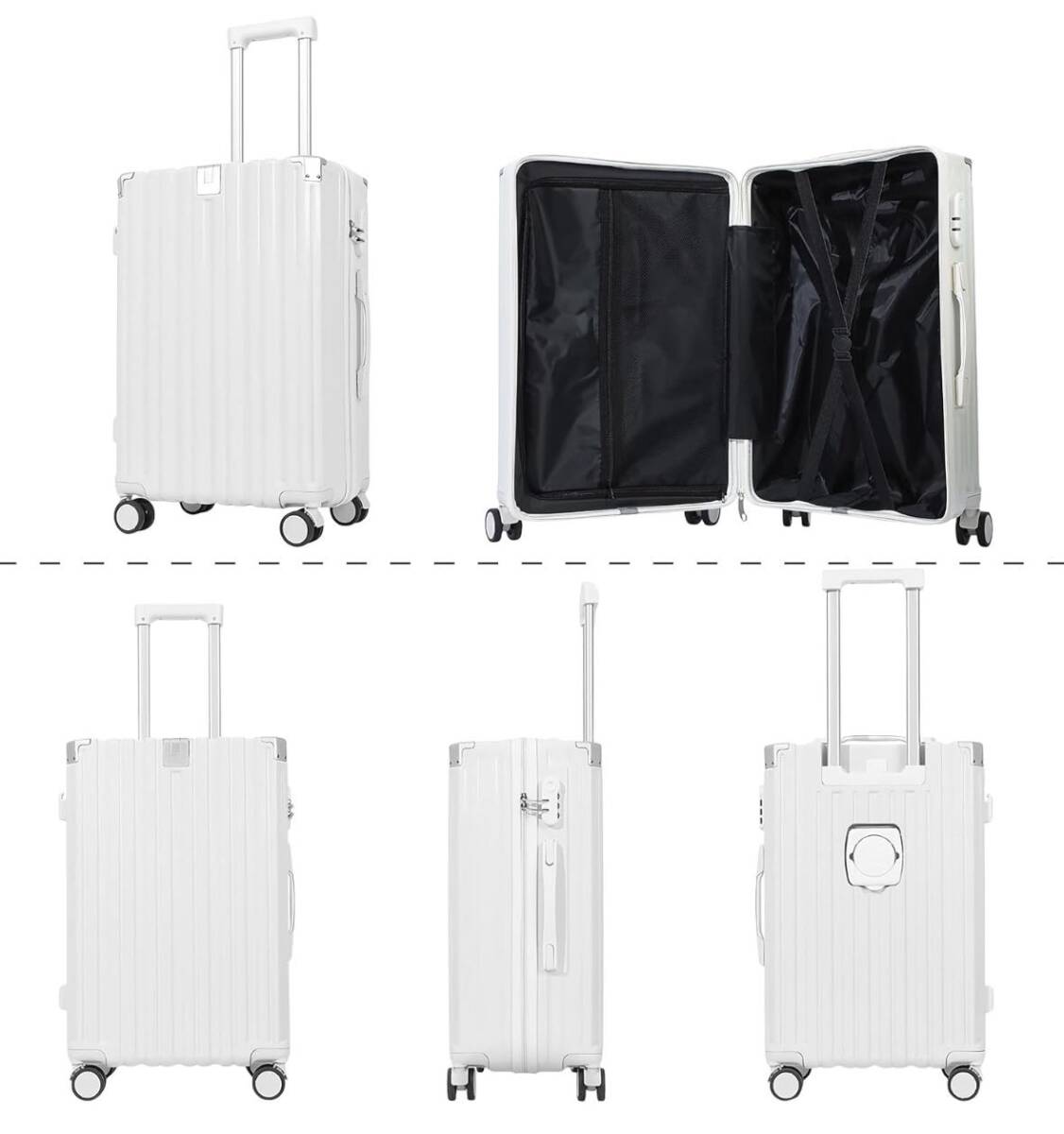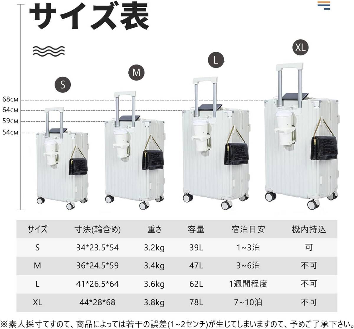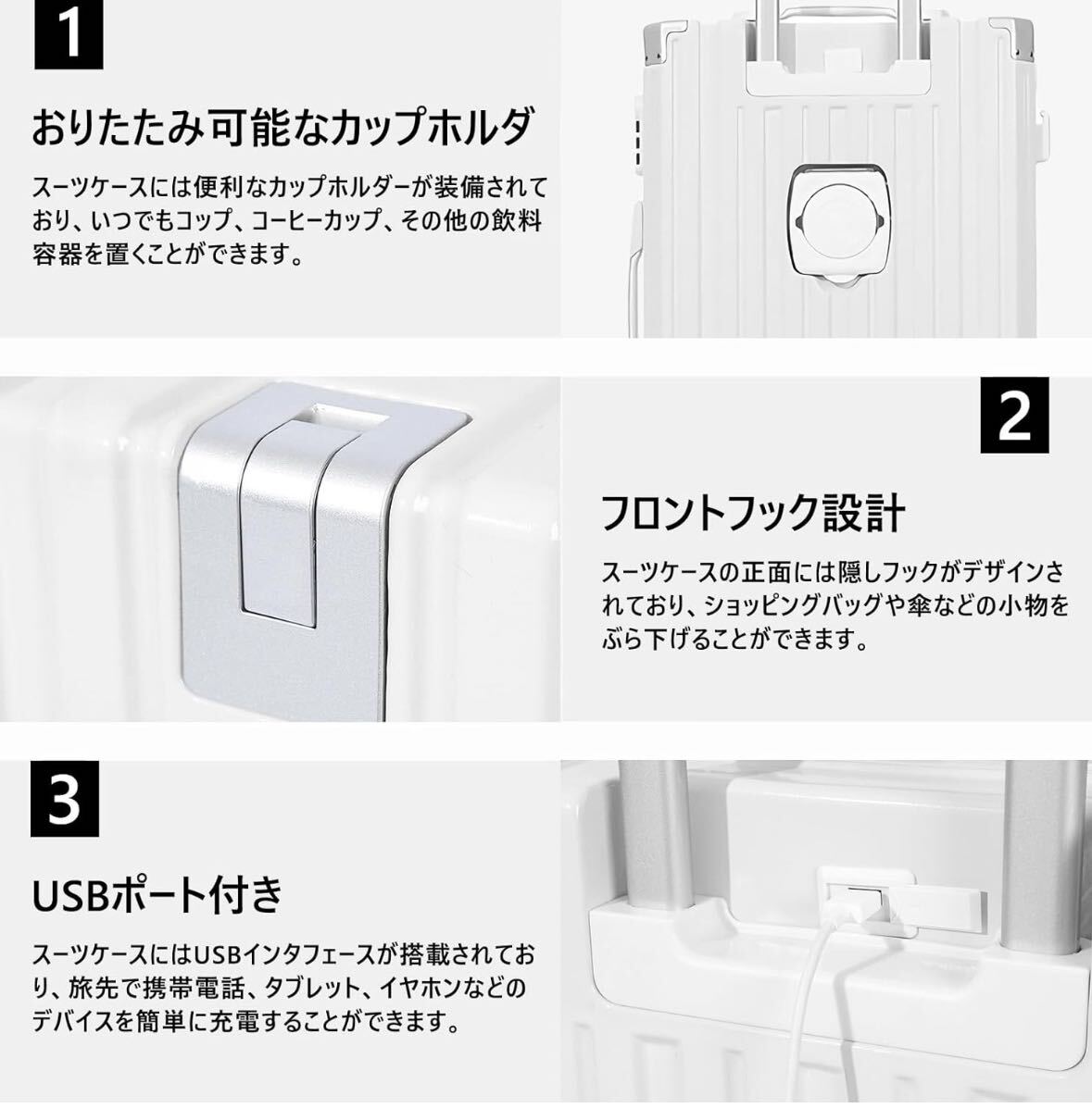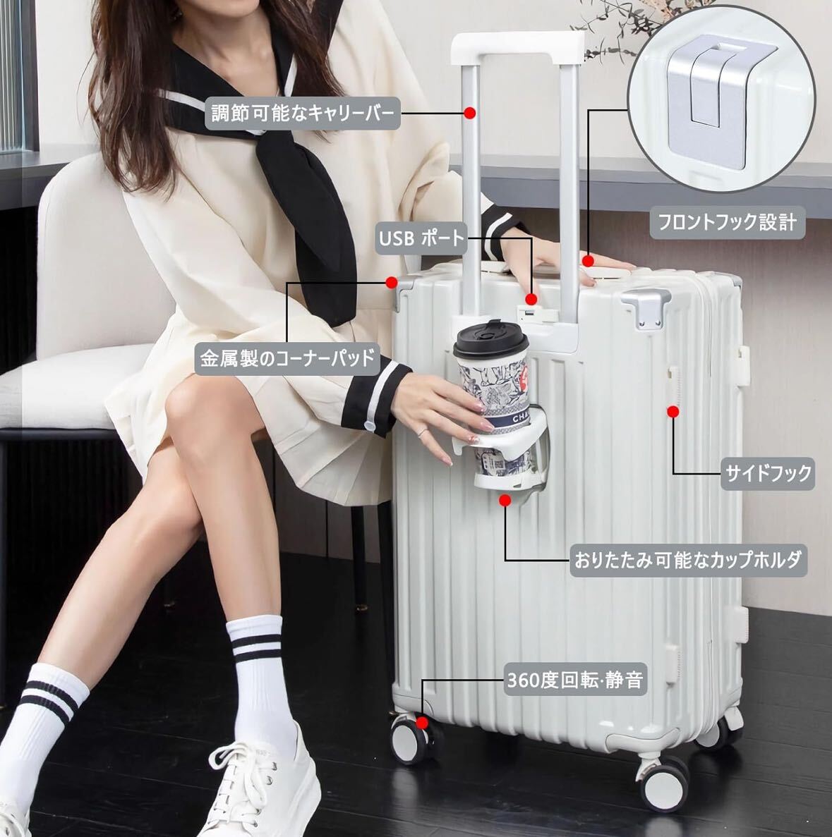ジャンク品 スーツケース Lサイズ キャリーケース USBポート付き キャリーバッグ カップホルダー付き 隠しフック機能 充電機能 大型 静音 ダブルキャスター 耐衝撃 360度回転 軽量 修学 泊まる 旅行 出張 (Lサイズ/62L, ホワイト)