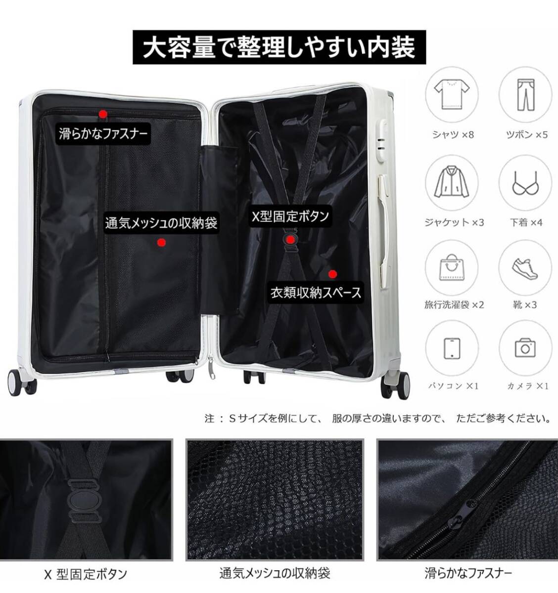 【合理的な仕切りデザイン】高品質のポリエステル生地で、柔らかいかつ快適です。密閉されたU字型コンパートメントは荷崩れ防止だけでなくプライバシー保護効果もあります。メッシュポケットにより、収納しにくい小物でもは一目でわかります。X型ベルトが完備され、荷物崩れを完全防止。収納力抜群、たくさんの小物を入れることはできます。