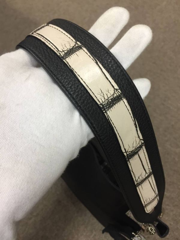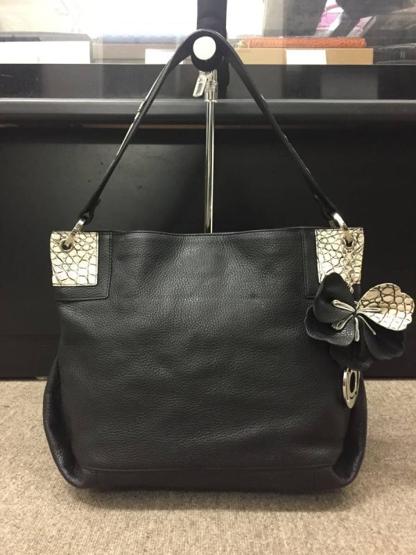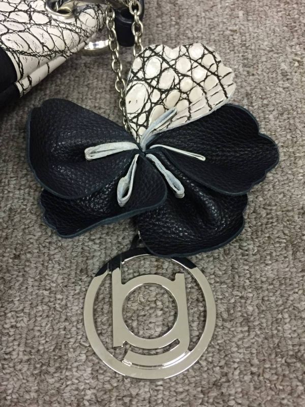 バニラのマットクロコダイルと黒のレザーがマッチしていて、フラワーチャームが付いていますので、素敵で高級感もありますね。