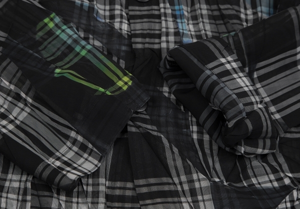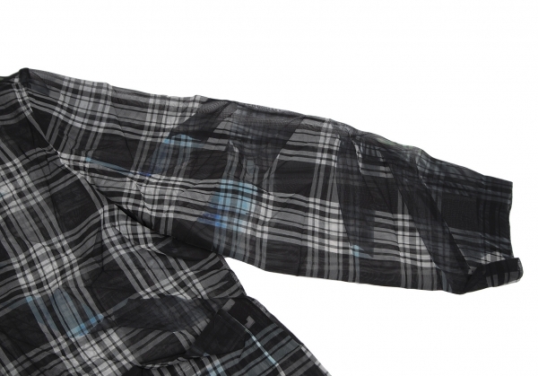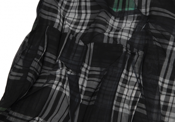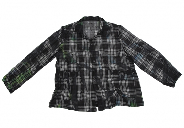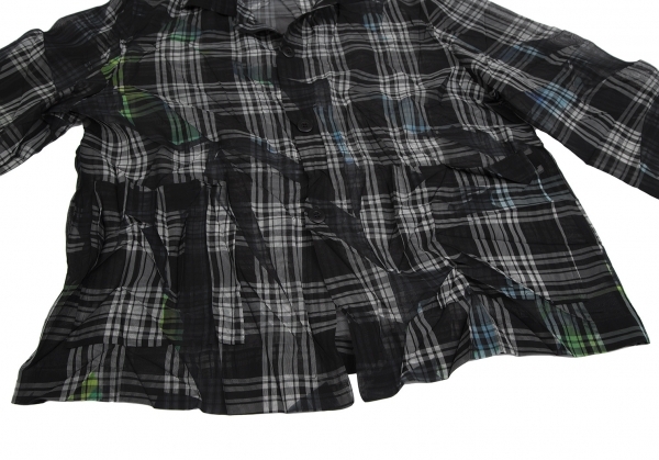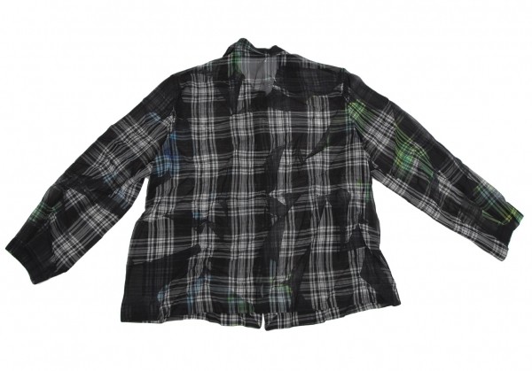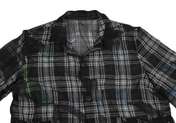 | プルドゥpour deux 製品プリントシワ加工チェックシャツ 黒緑他M |