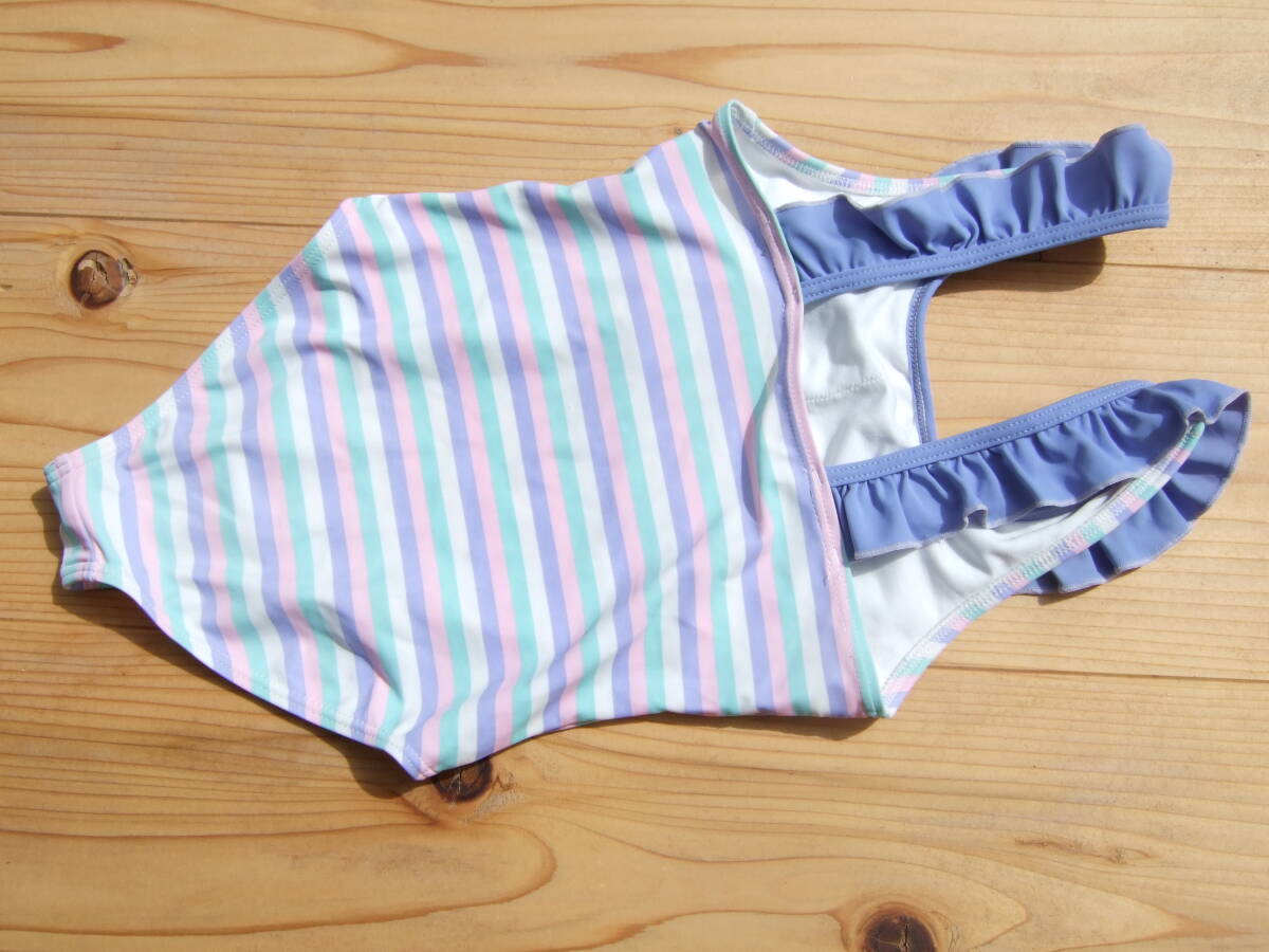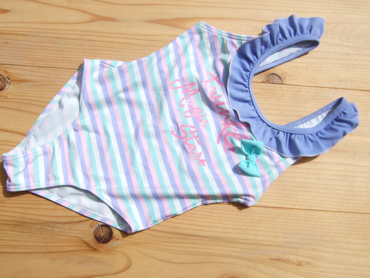 USEDキッズ可愛いマザウェイズパステルボーダーワンピース水着!140センチ
