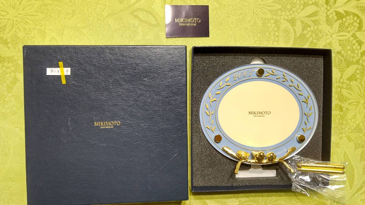 413-9 2001年限定 廃番 ミキモト フォトフレーム (外枠15×12.3㎝) 木の枝に2羽の小鳥 巣箱にパール 港南台 高島屋 箱入り