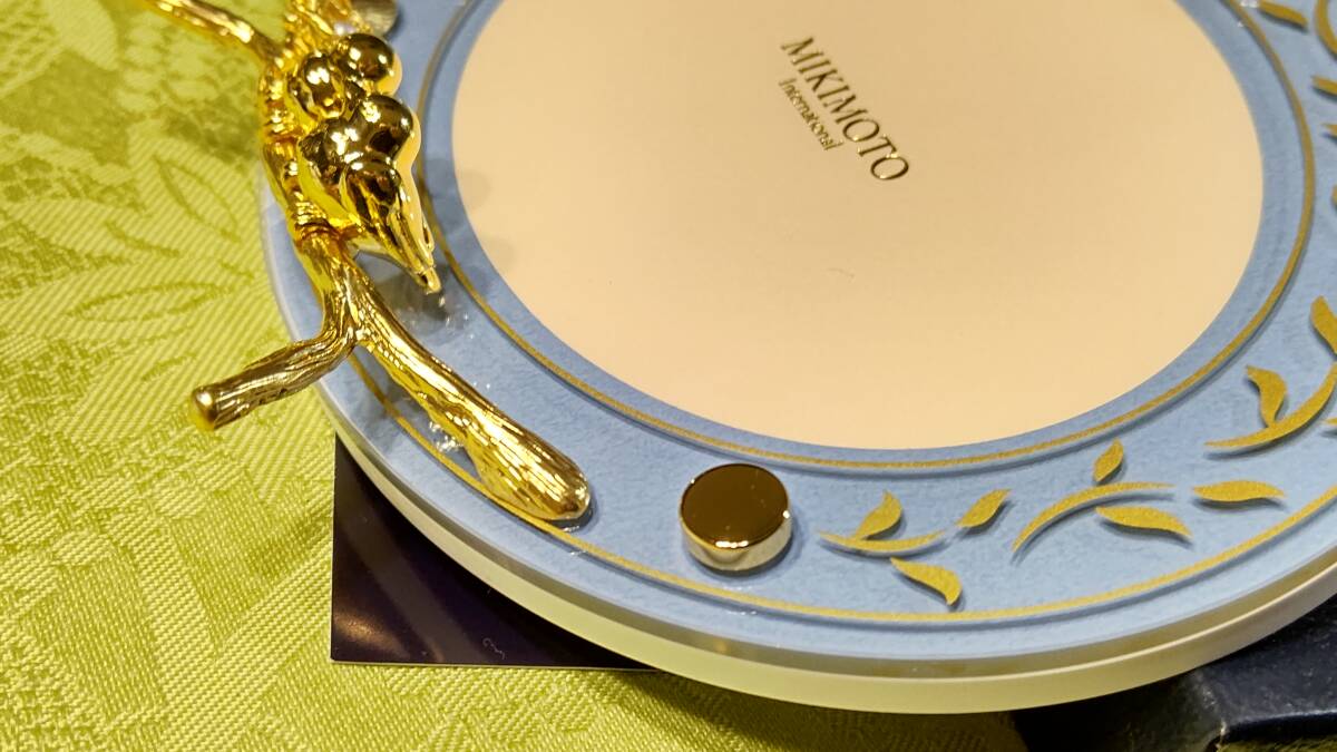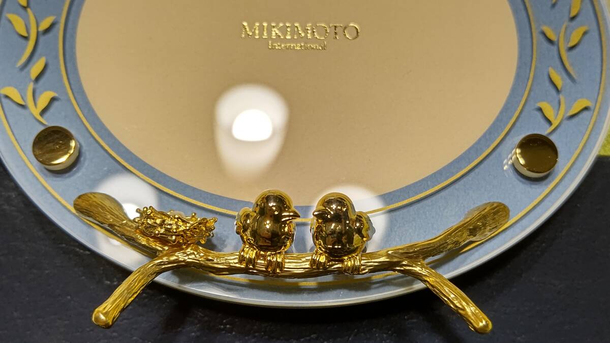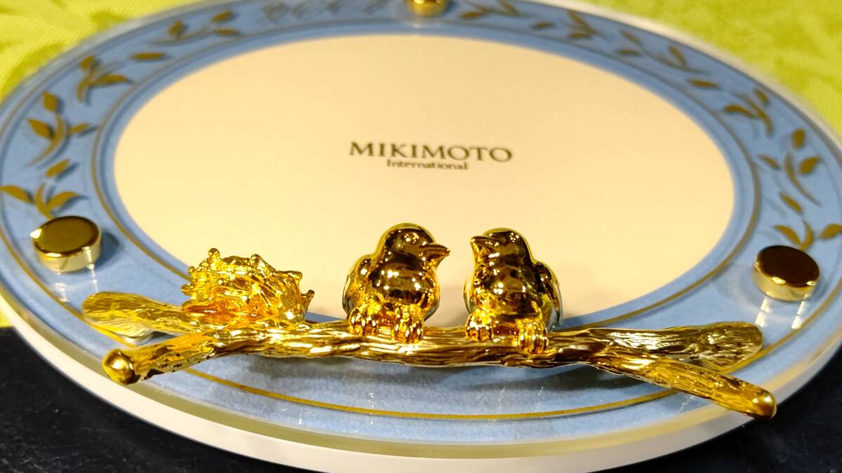 413-9 2001年限定 廃番 ミキモト フォトフレーム (外枠15×12.3㎝) 木の枝に2羽の小鳥 巣箱にパール 港南台 高島屋 箱入り