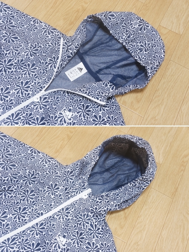C880 即決 良品 adidas アディダス climapyoof 機能性ウェア 花柄デザイン 裏地メッシュ フーデット ZTPジャケット S 濃紺