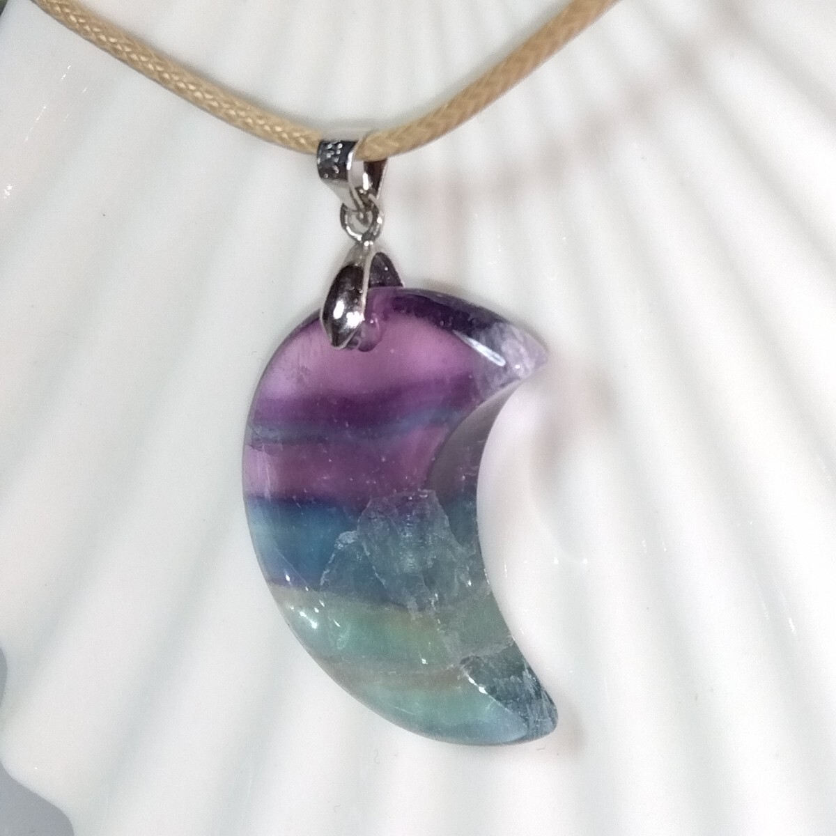 ★天然フローライト★ムーン★ペンダント・トップ★1個
