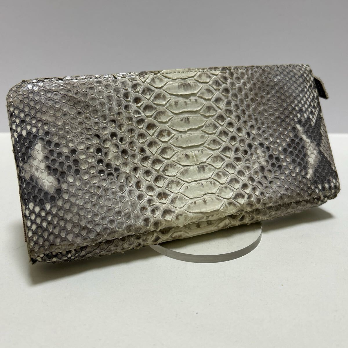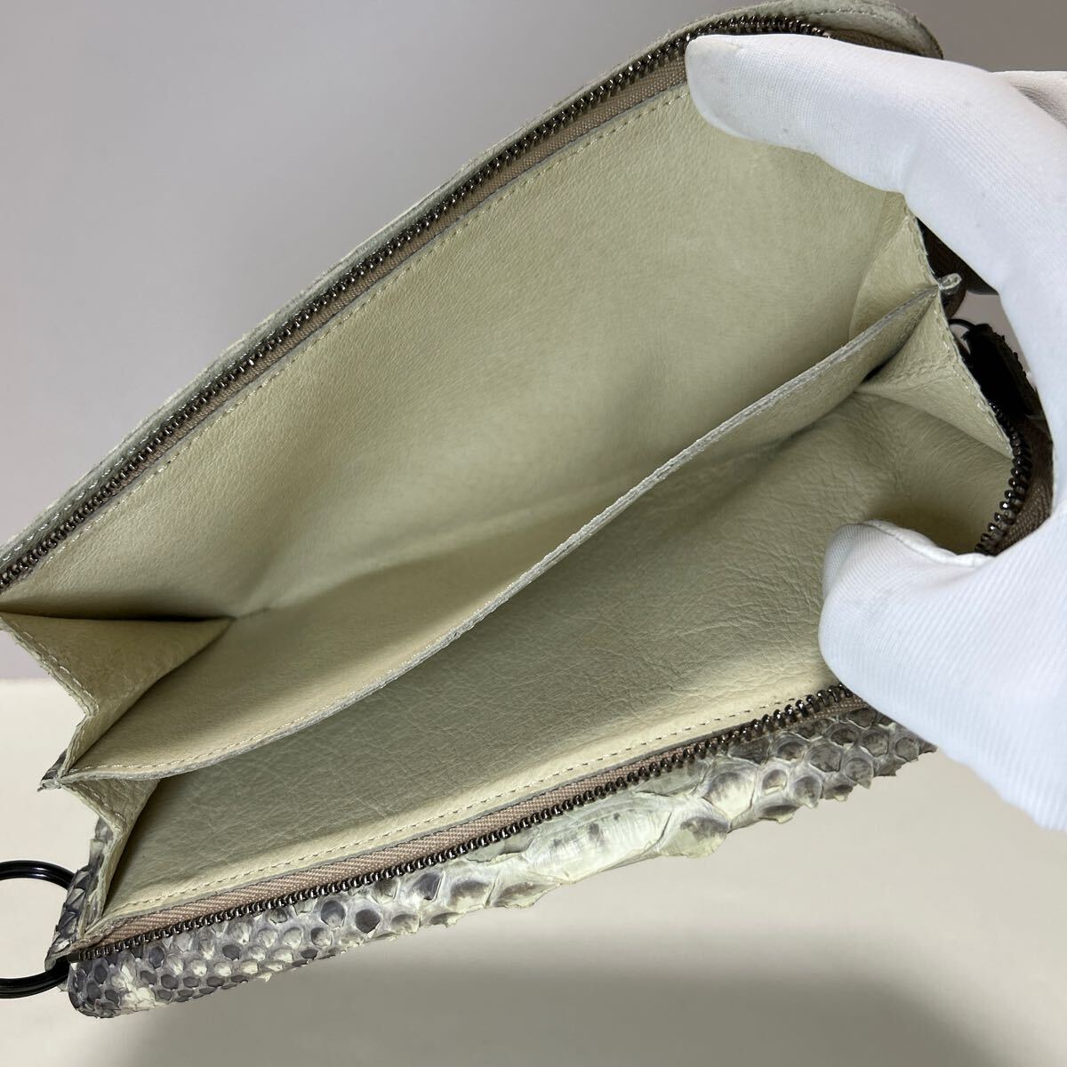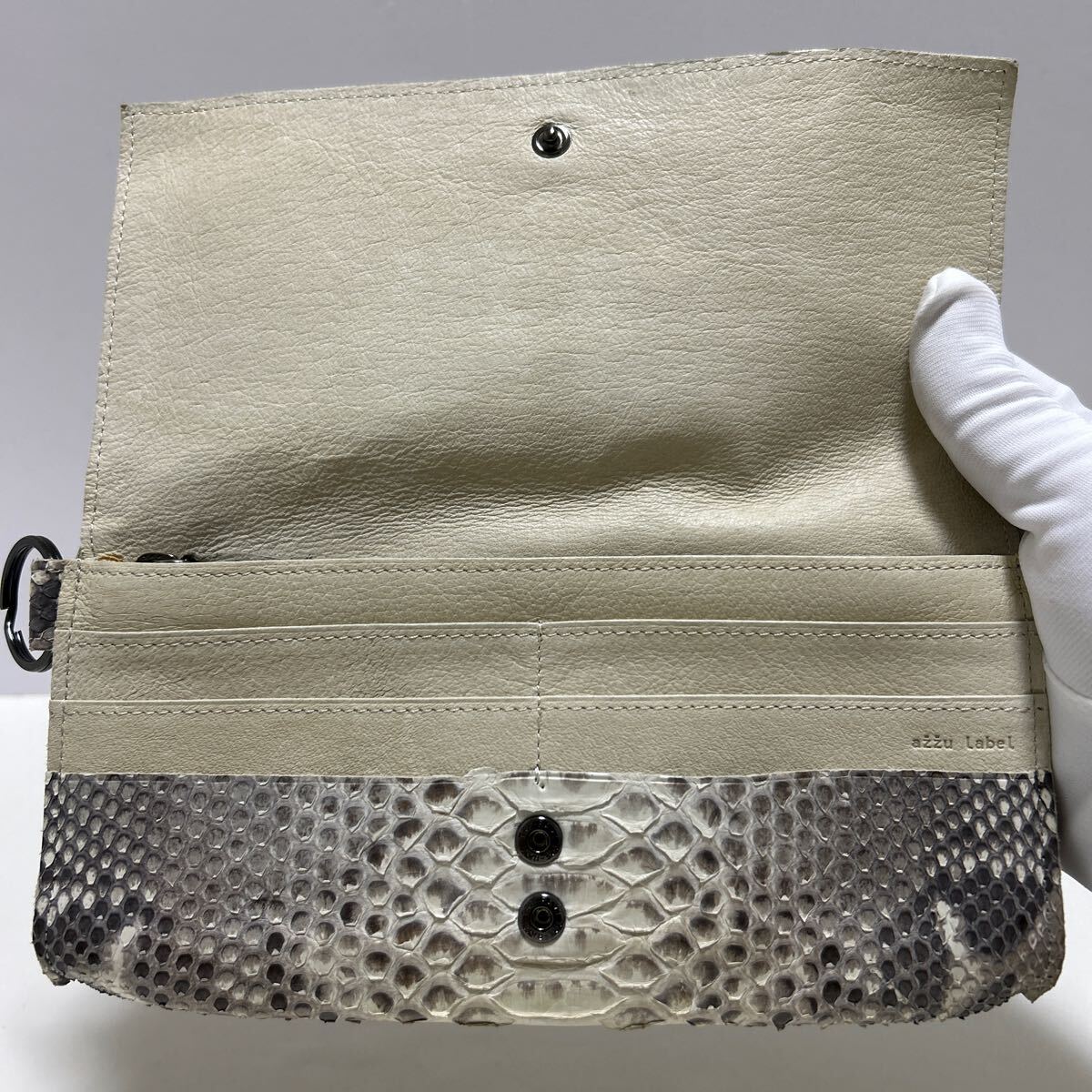 ◆azzu label アズレーベル パイソン 本革 かぶせ 長財布◆ 蛇革 L字ファスナー小銭入れ 札入れ×2 ホワイト 【送料無料】0428
