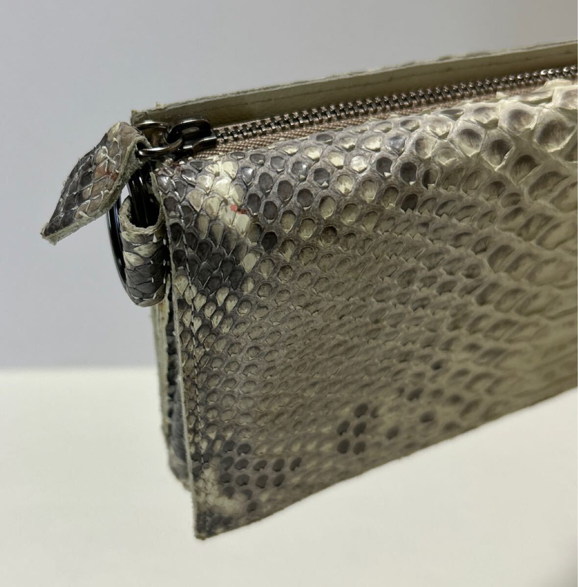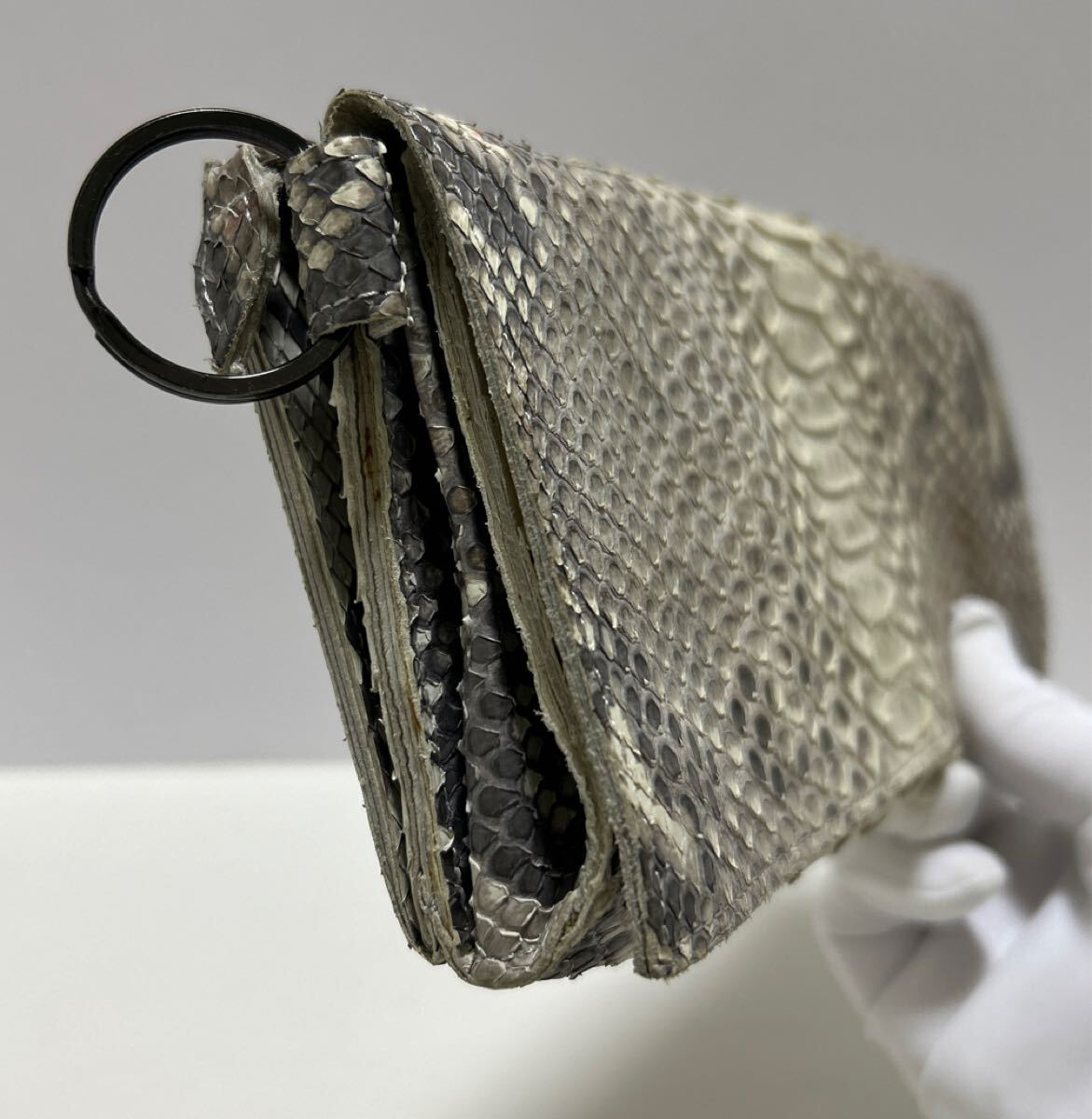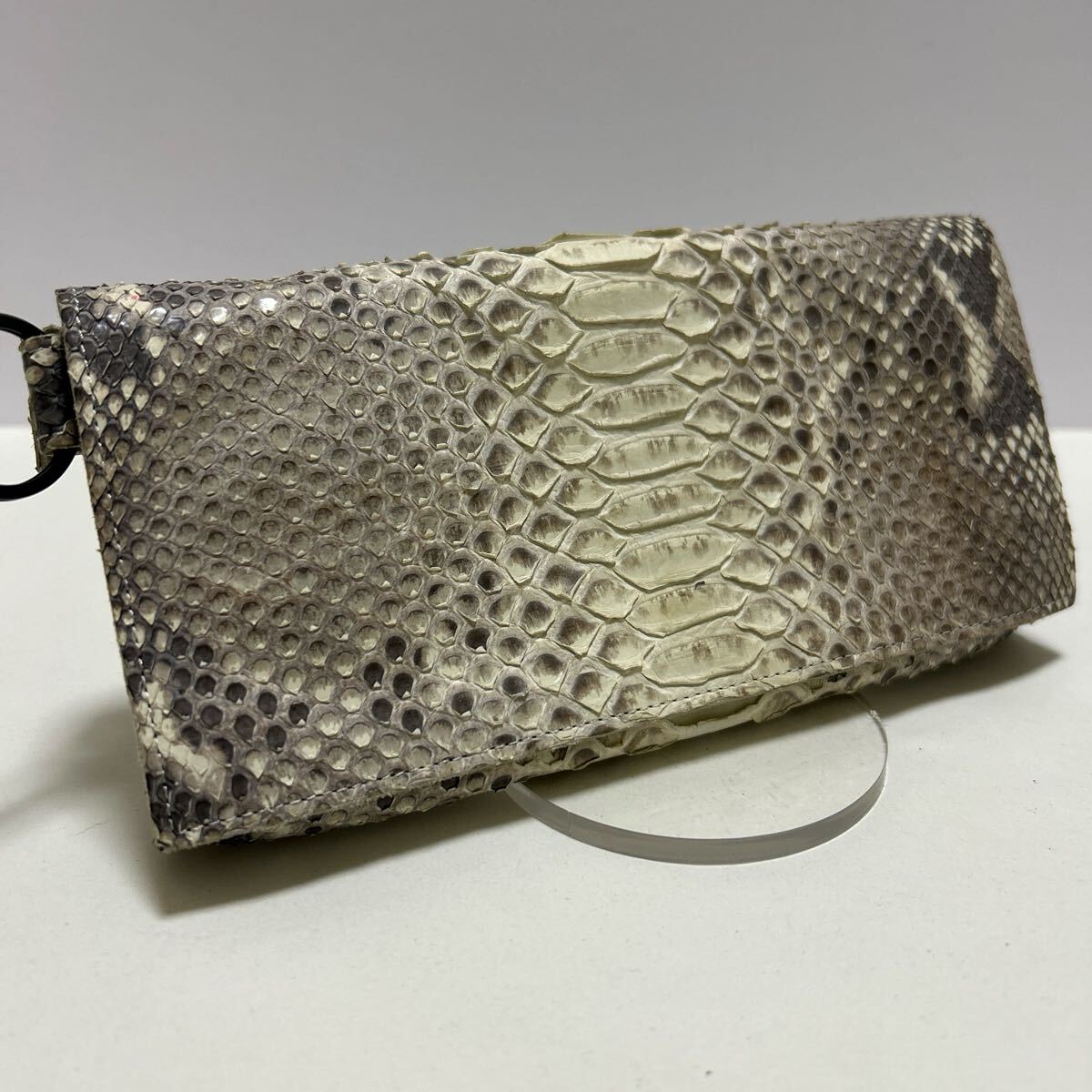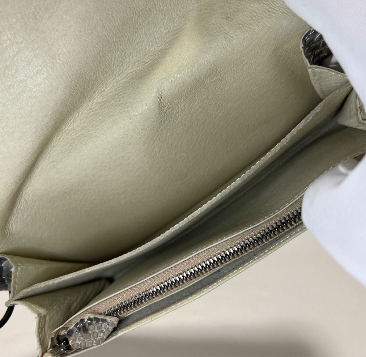◆azzu label アズレーベル パイソン 本革 かぶせ 長財布◆ 蛇革 L字ファスナー小銭入れ 札入れ×2 ホワイト 【送料無料】0428