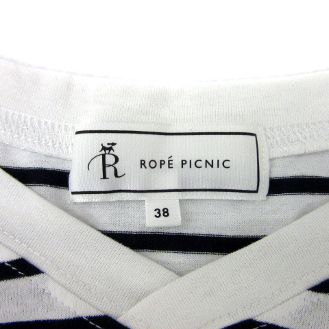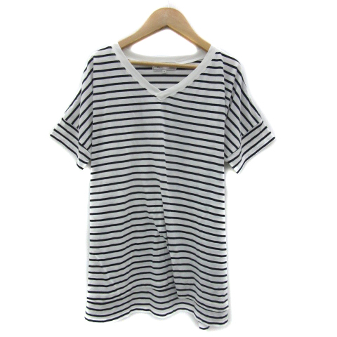 ロペピクニック ROPE Picnic カットソー 半袖 Vネック ボーダー柄 オーバーサイズ 38 M 白 ホワイト 紺 ネイビー /YS23 レディース