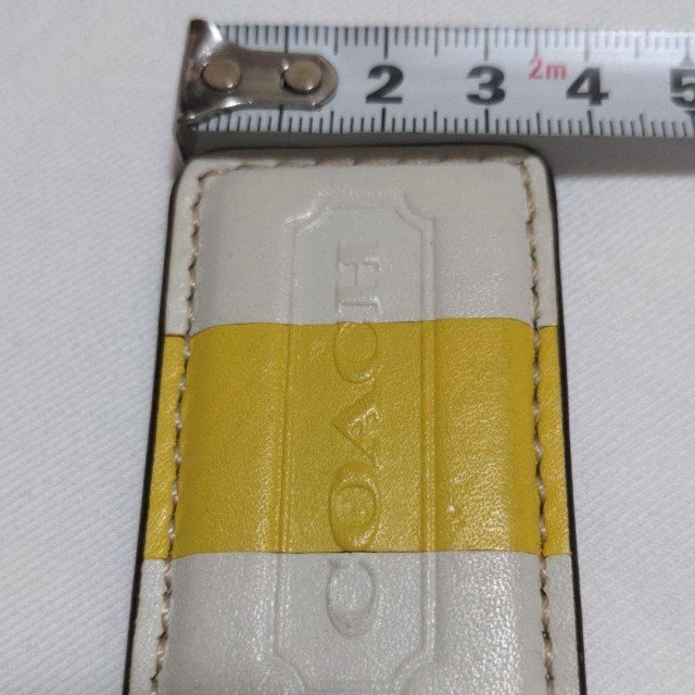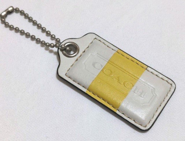 ■024 送料無料!コーチ チャーム キーホルダー レザー 白/黄色 COACH 同梱NG■