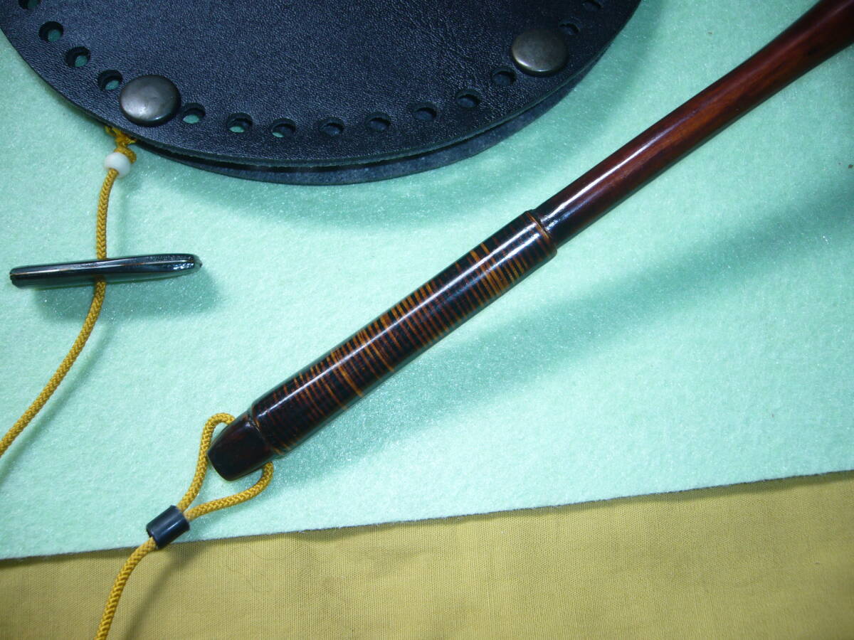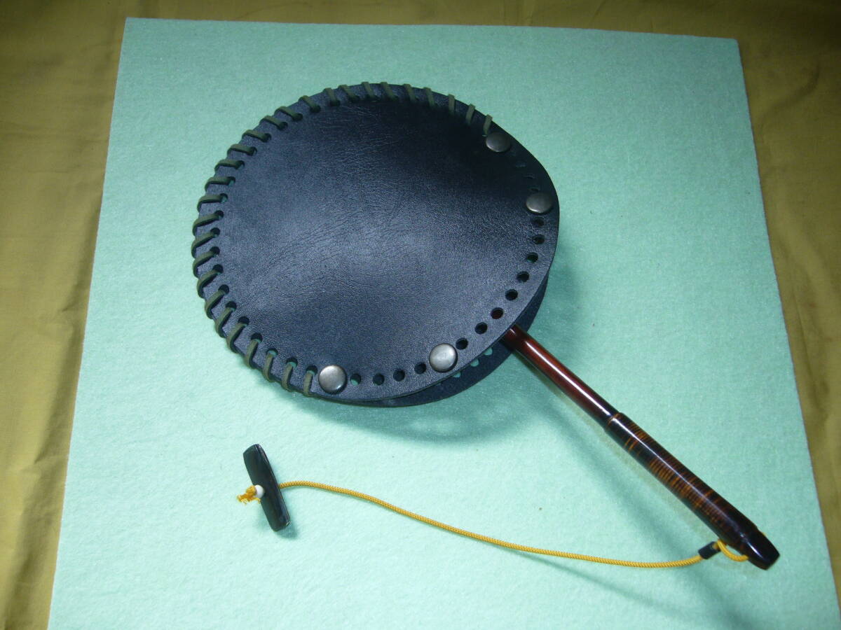 3 玉枠:レーザーケース⇔【直径:約:16.0cm】【黑】【革紐、飾り留め】