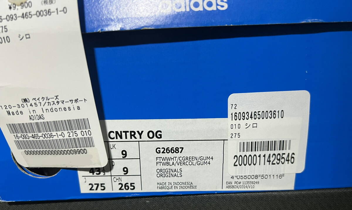 新品デッドストック 定番adidas アディダス G26687 COUNTRY OG ランニングシューズ サイズ27.5 グリーン インドネシア製