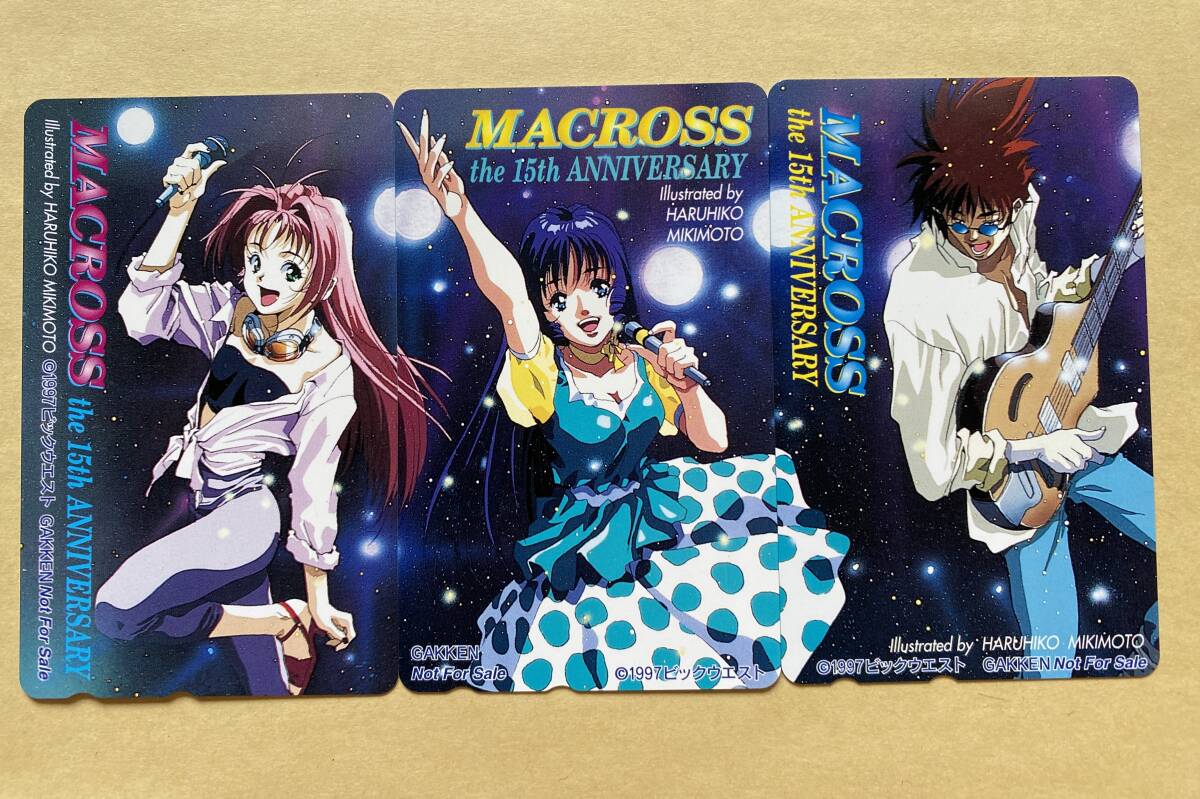 【未使用】 テレカ 50度 マクロス 3枚組 ミレーヌ・ジーナス/リン・ミンメイ/熱気バサラ 美樹本晴彦 the 15th ANNIVERSARY