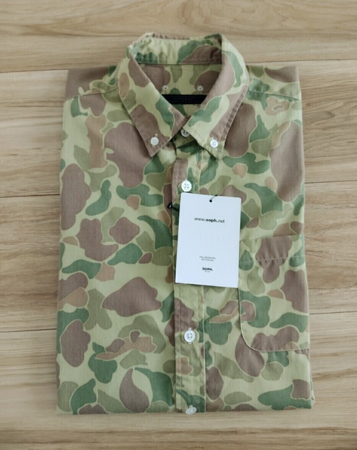 【新品タグ付】SOPHNET. 定価約2.6万 ダックカモ 長袖シャツ カモフラ ボタンシャツ Sサイズ ソフネット 迷彩 ミリタリー SOPH.