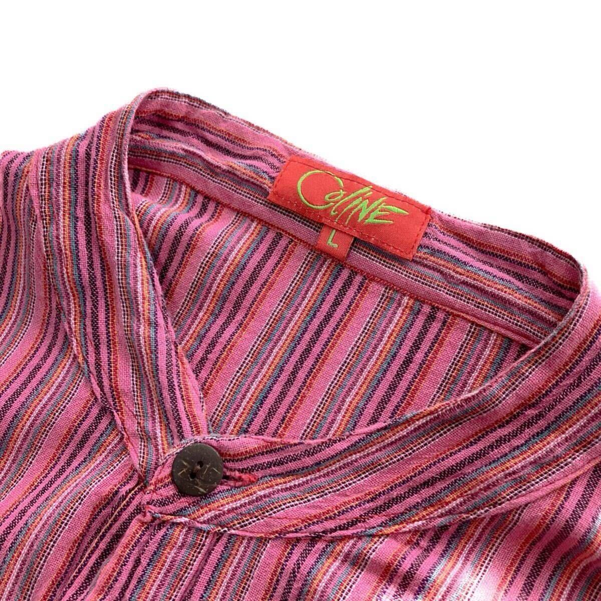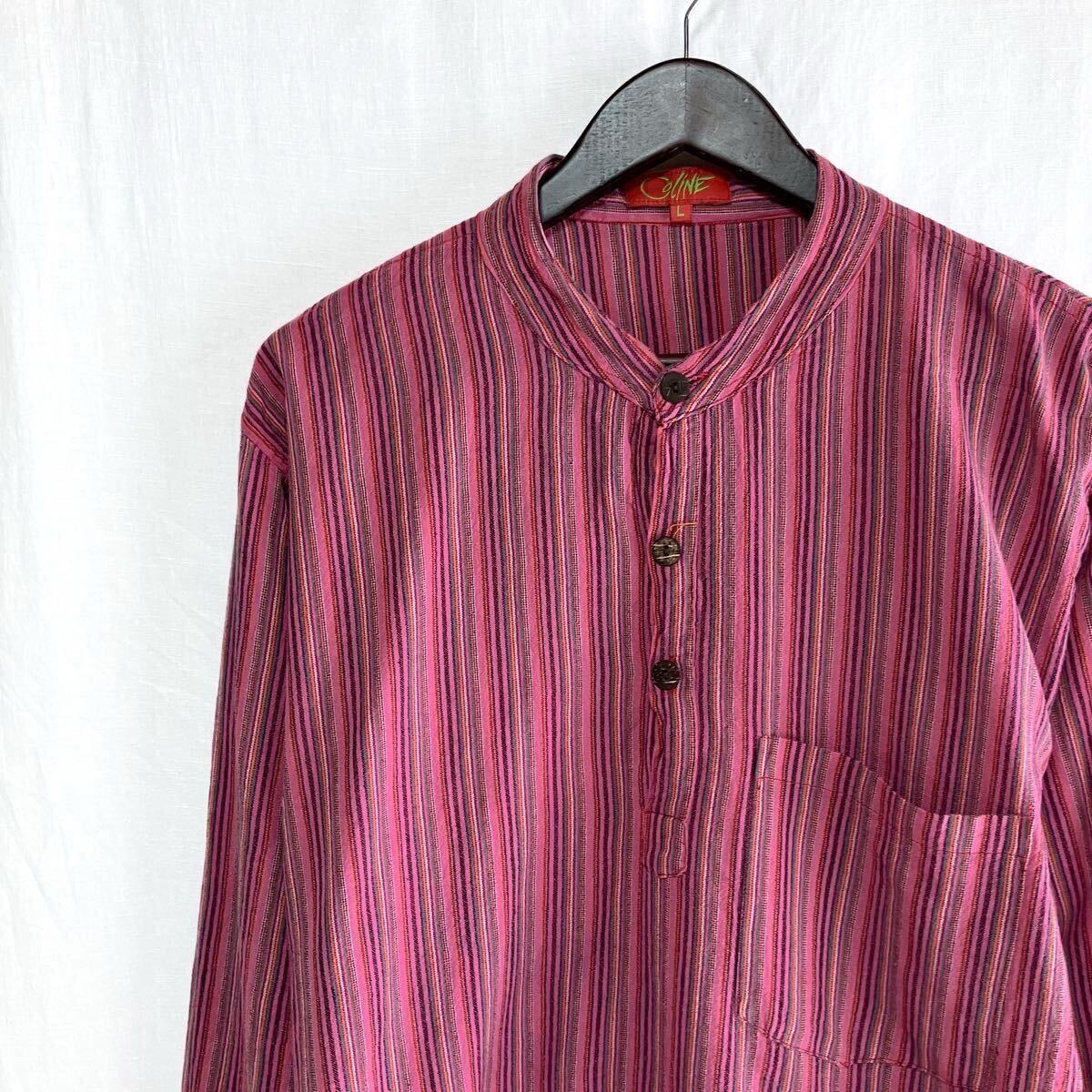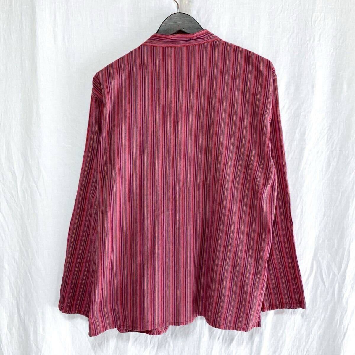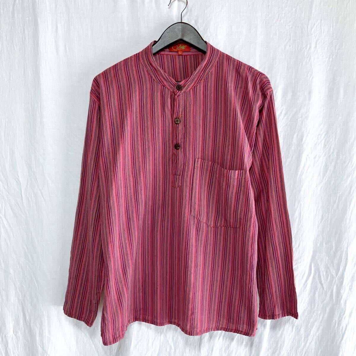 80s 90s ストライプ ネパールシャツ ヨーロッパ アメカジ オープンボタン 長袖 シャツ L