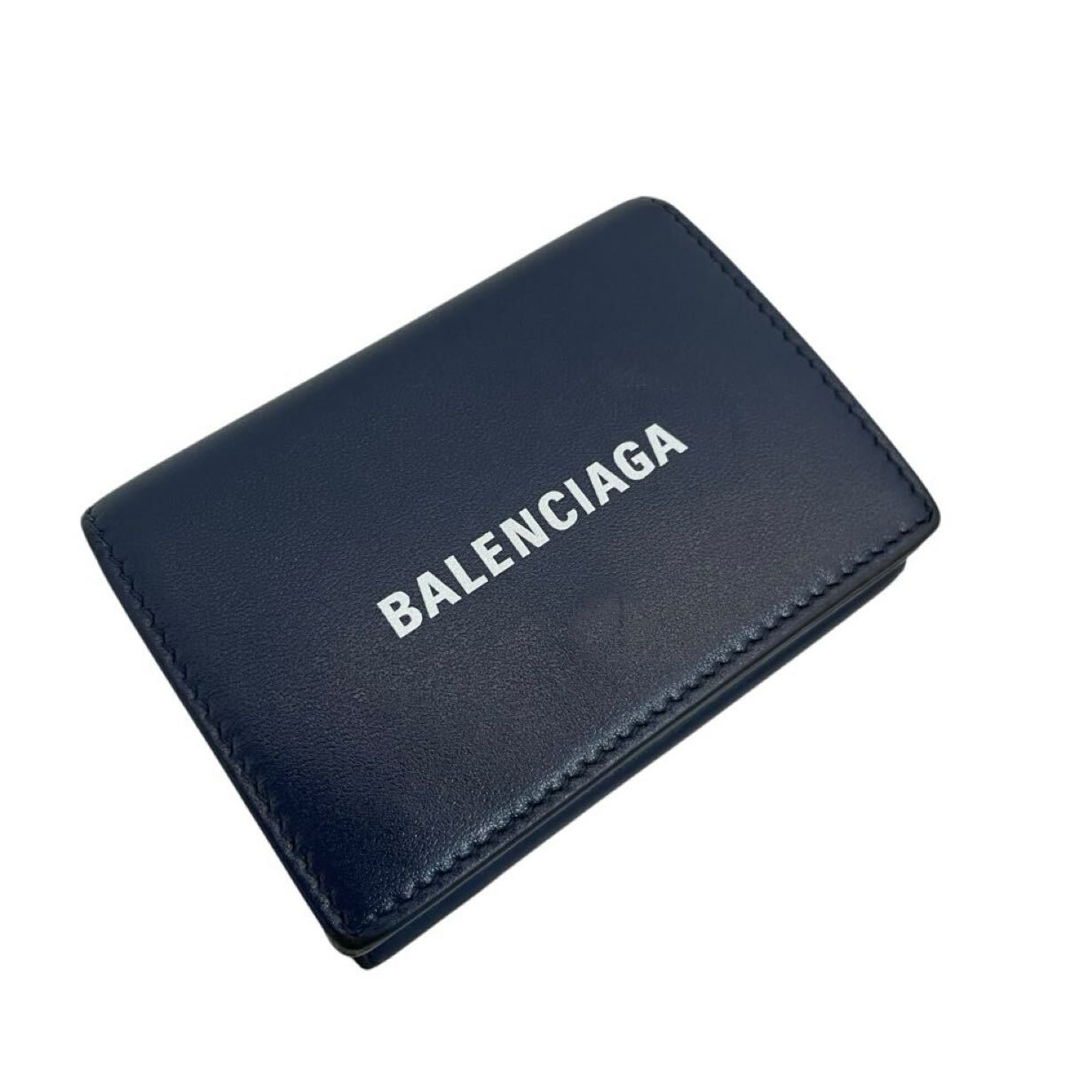 【箱付き美品】 BALENCIAGA バレンシアガ 財布 三つ折り財布 人気カラー ネイビー メンズ レディース