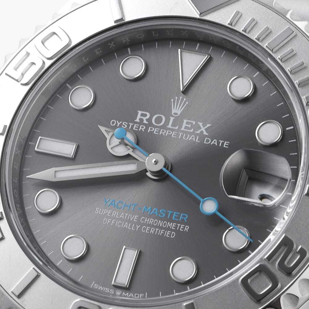 | モデル情報 | ヨットマスターは自家用クルーザーやヨットを所有し、クルージングを楽しむセレブな方々をターゲットにした高級スポーツウォッチです。こちらは2016年に発表されたヨットマスターロレジウムです。ダークロジウムダイアルを備え、トレンドのブルーを差し色に使用しています。ムーブメントにはクロノメーター認定のCal.2236を搭載。ブレスレットとクラスプに改良が加えられ、実用性と質感が向上しています。男女問わずお使い頂ける絶妙なサイズ感とデザインが魅力的です。 |