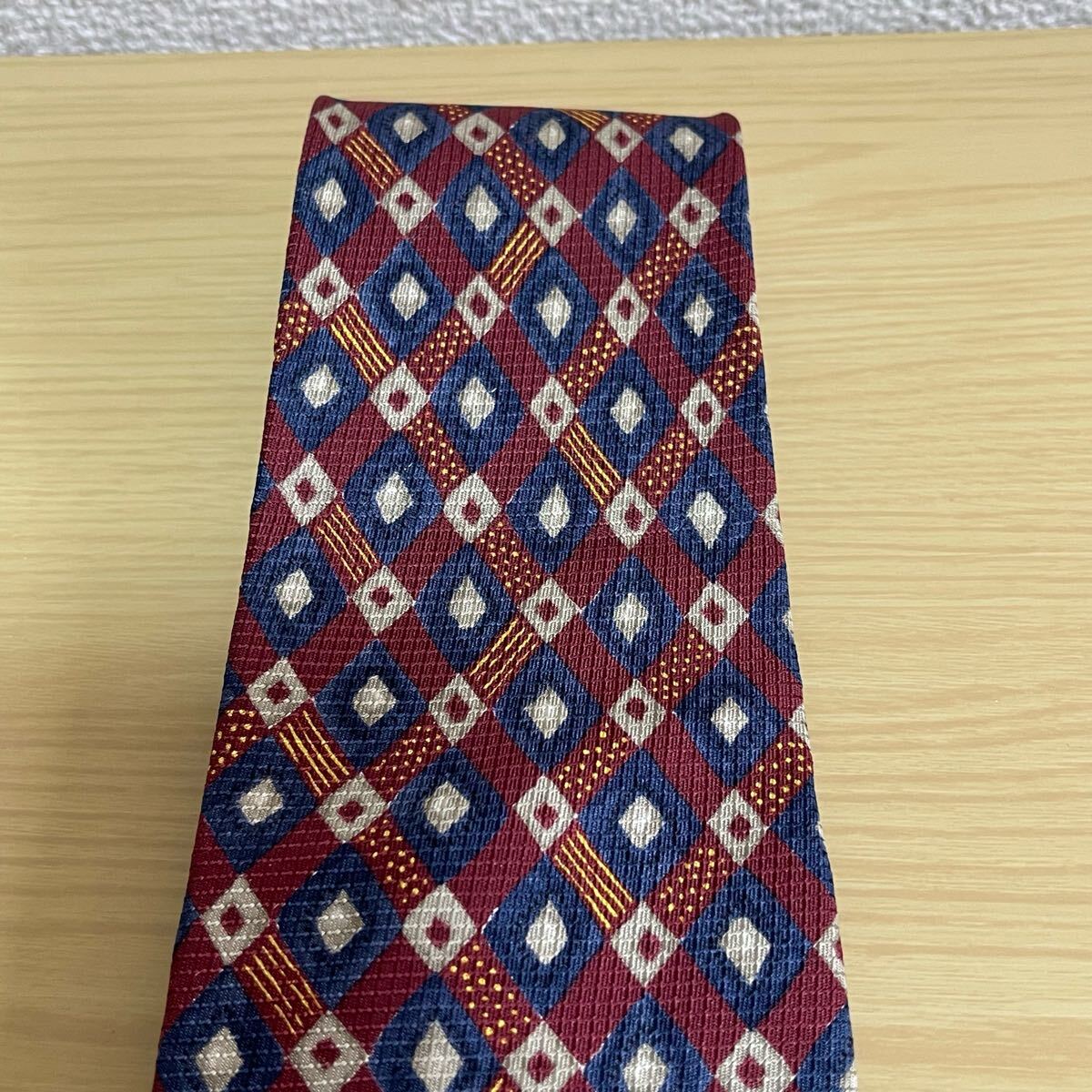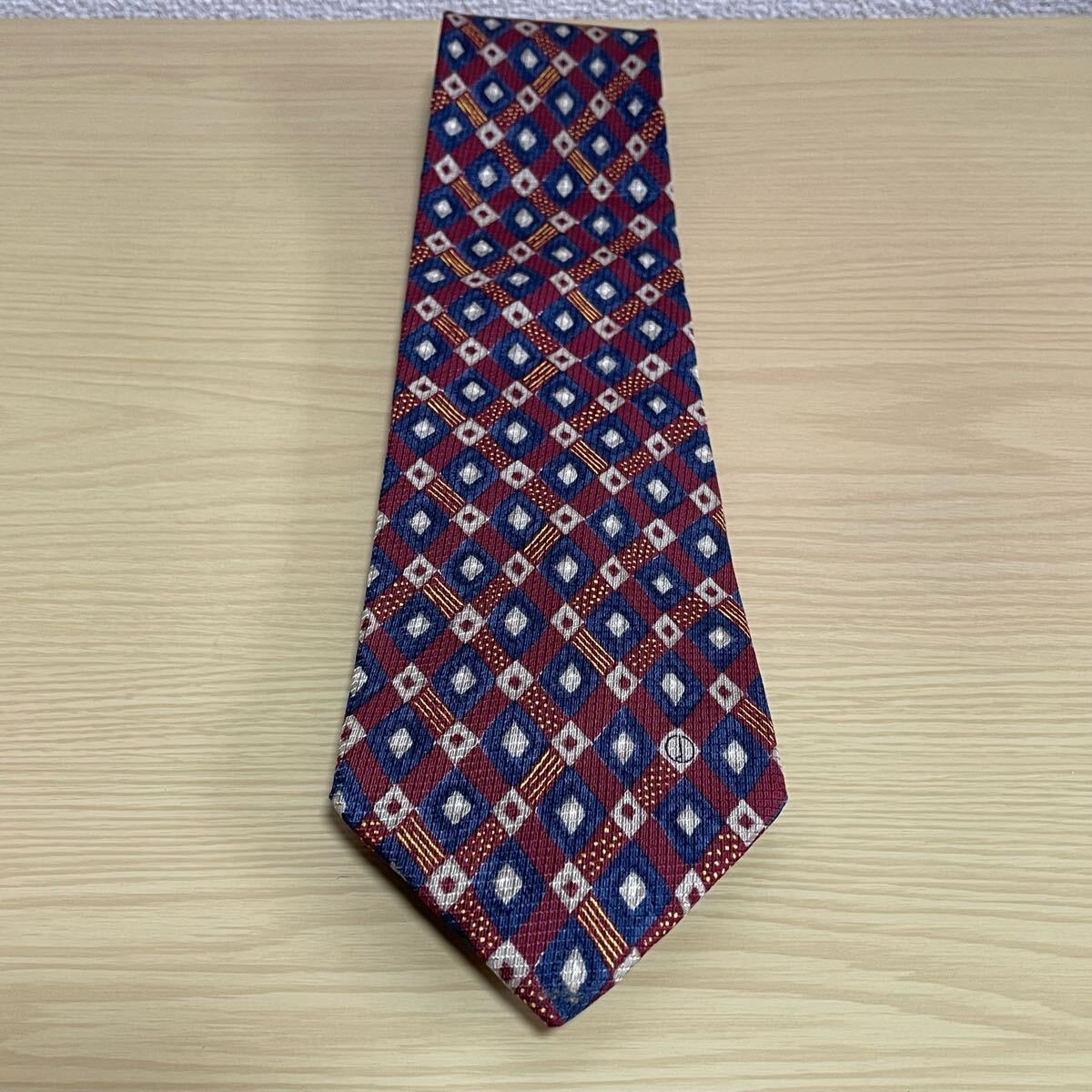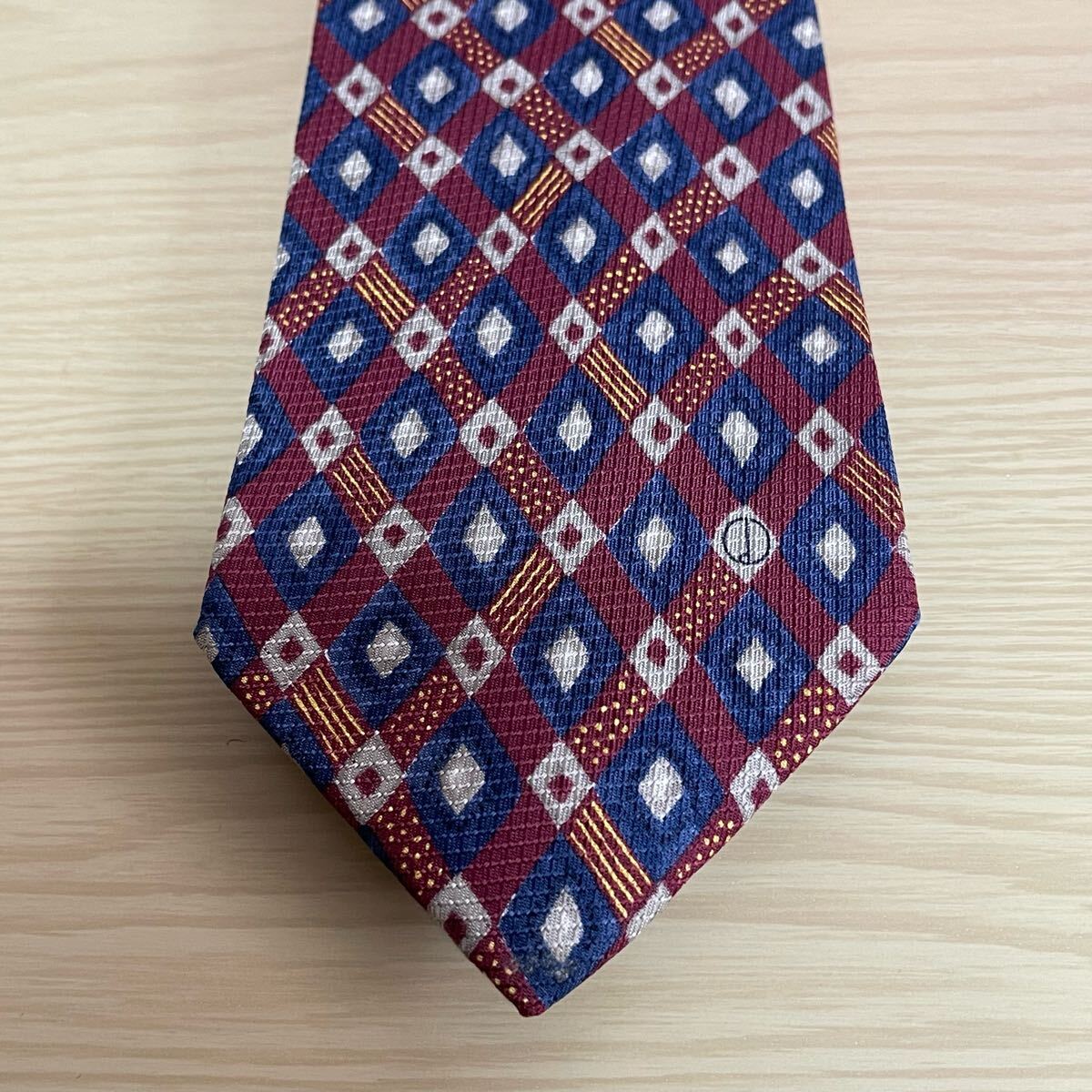 シルバーボルドー紺ダイヤDロゴデザインネクタイ