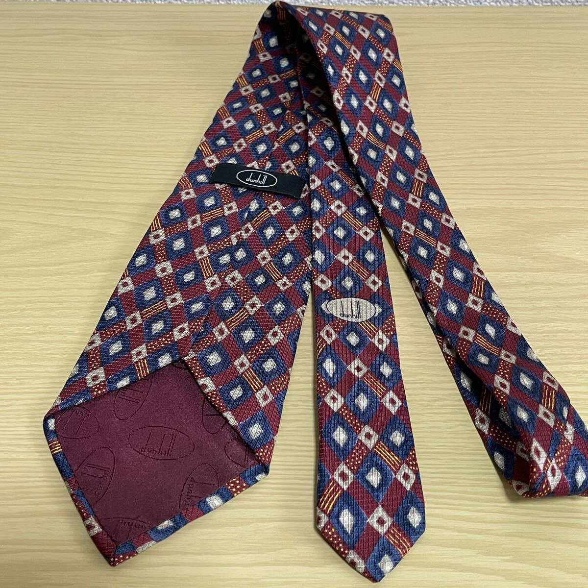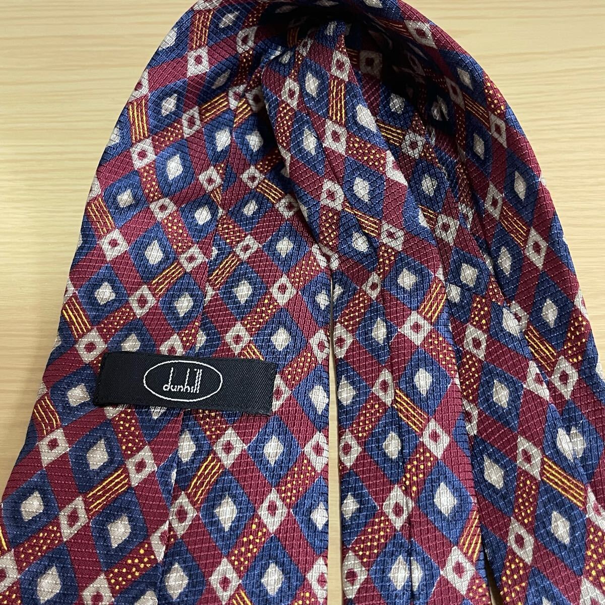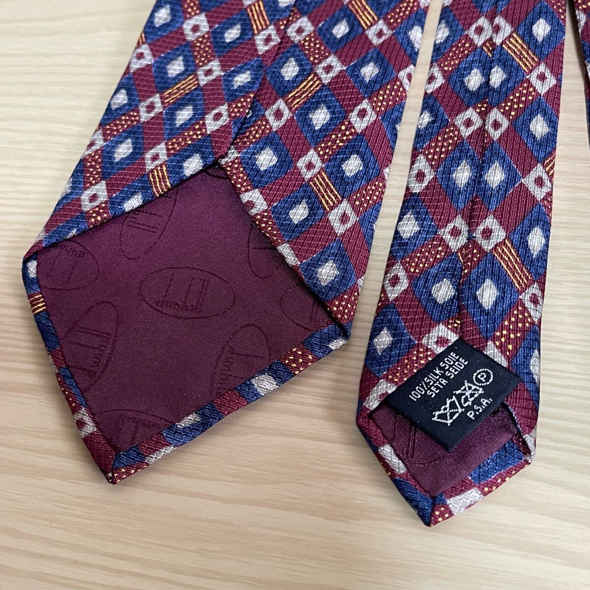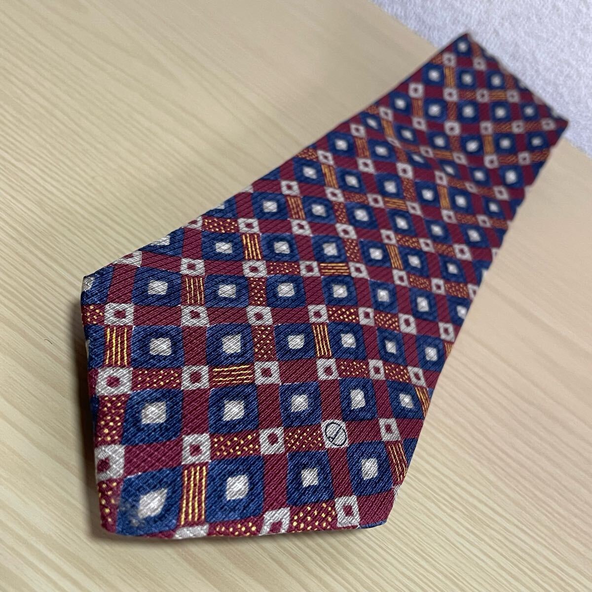 シルバーボルドー紺ダイヤDロゴデザインネクタイ