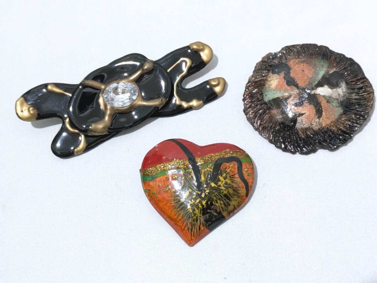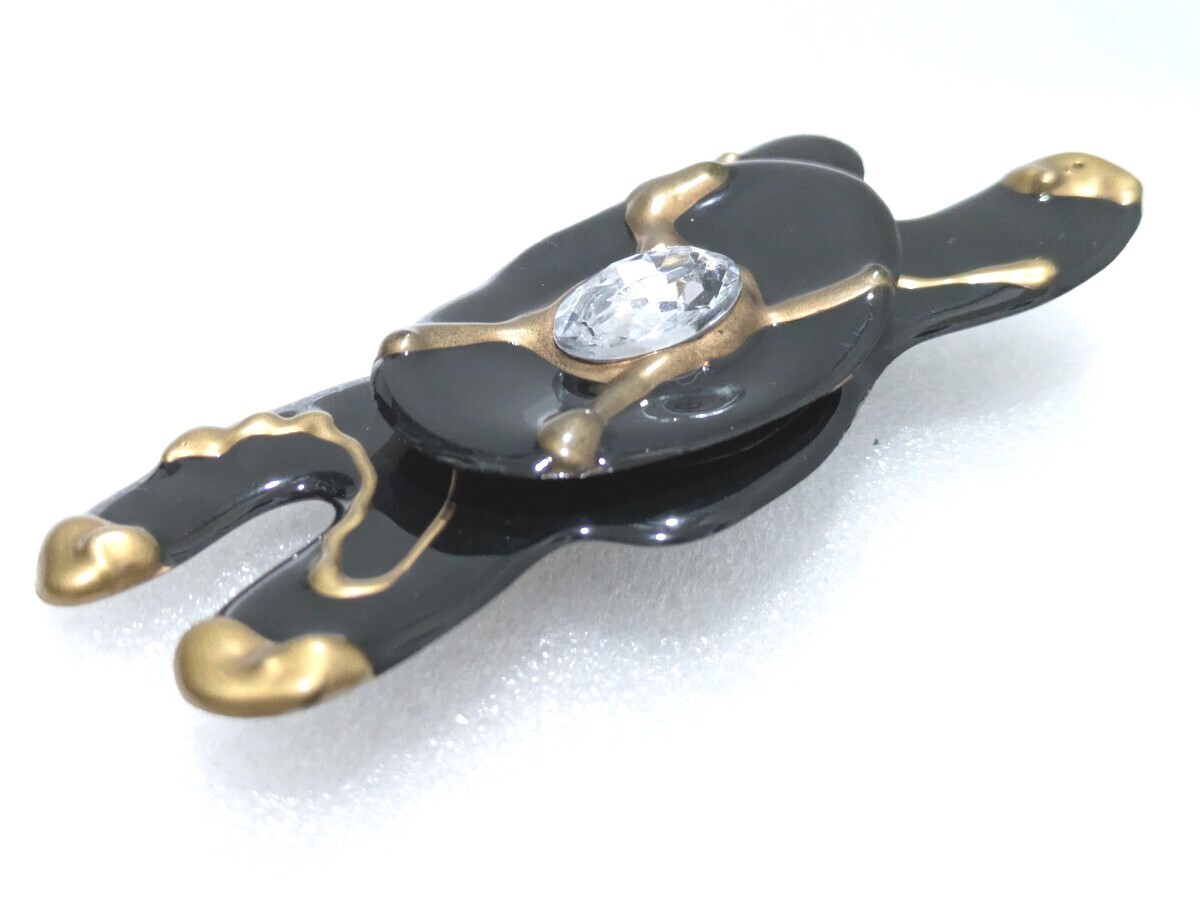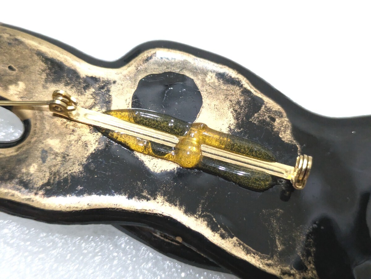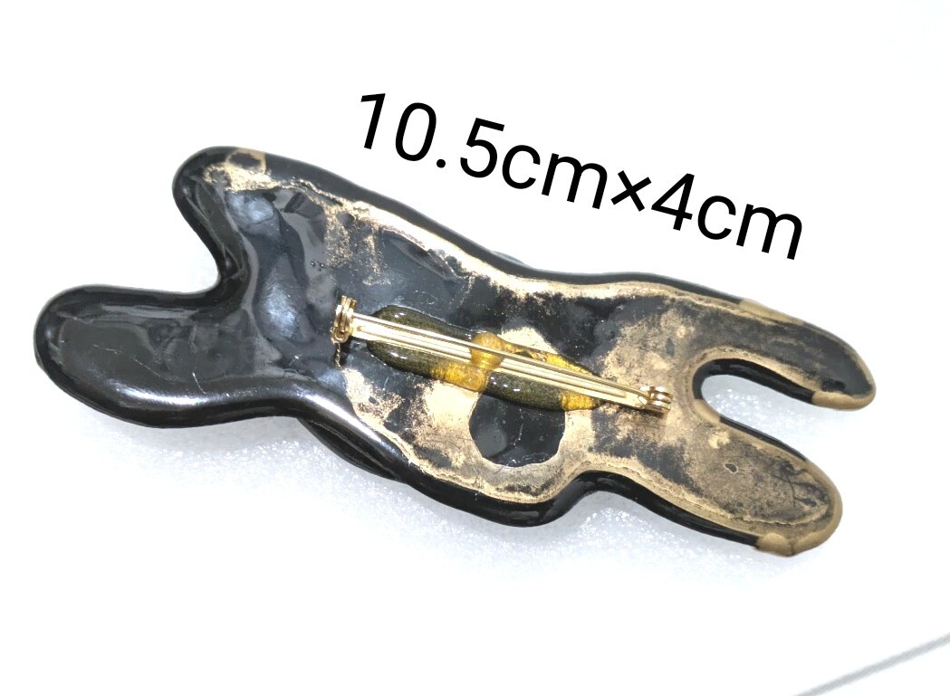ビジュー付ブラック×ゴールドブローチの素材は不明です。