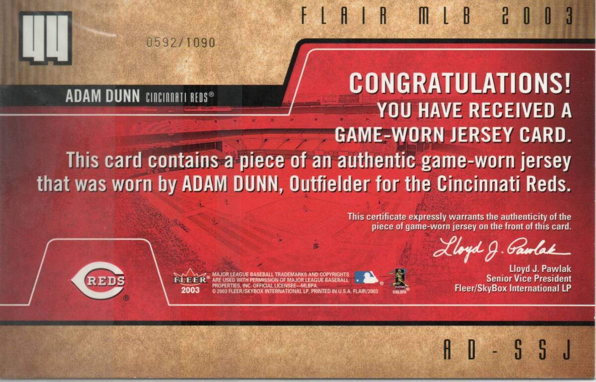 MLB ADAM DUNN 2003 FLEER FLAIR SWEET SWATCH OVER SIZE JERSEY /1090 1090枚限定