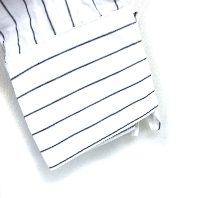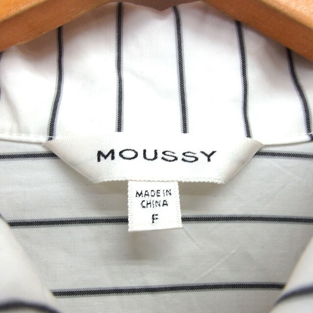 マウジー MOUSSY ストライプ ステンカラー シャツ ブラウス リボン コットン 綿 透け感 長袖 F 白 ホワイト /NT15 レディース