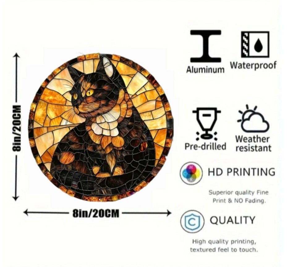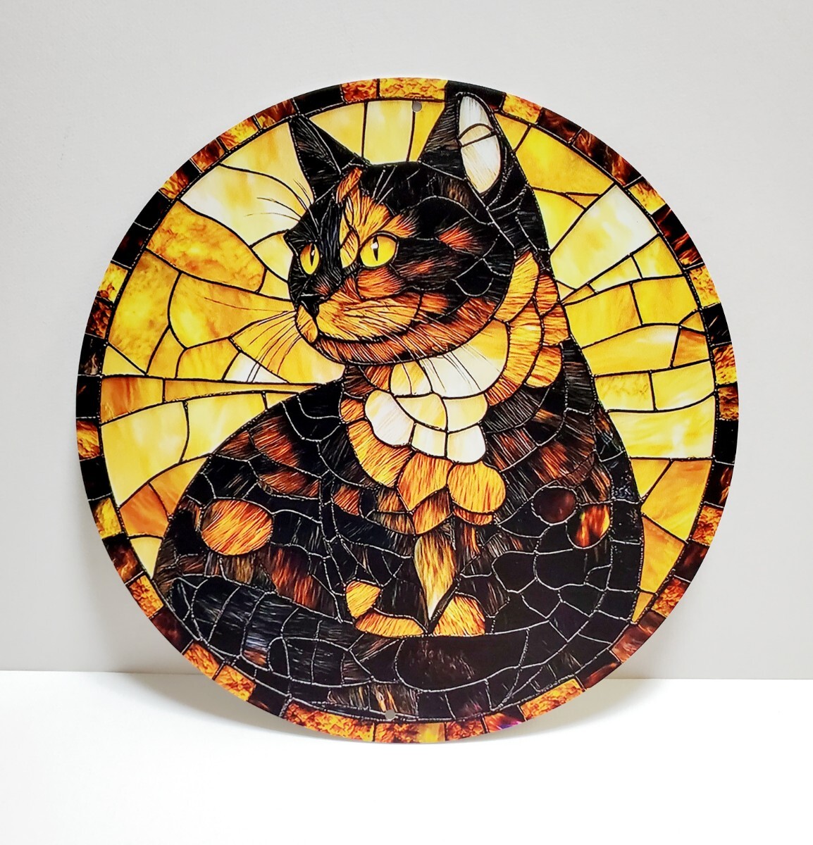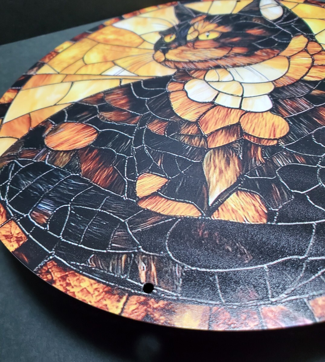 アルミニウムのメタルボードに3Dのプリント技術で描かれた猫のメタルアートです。