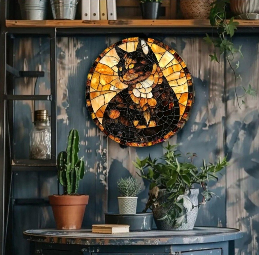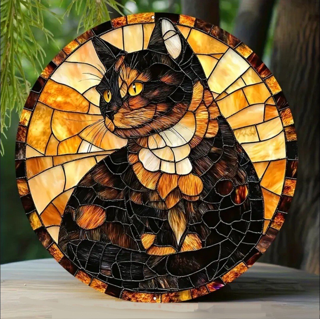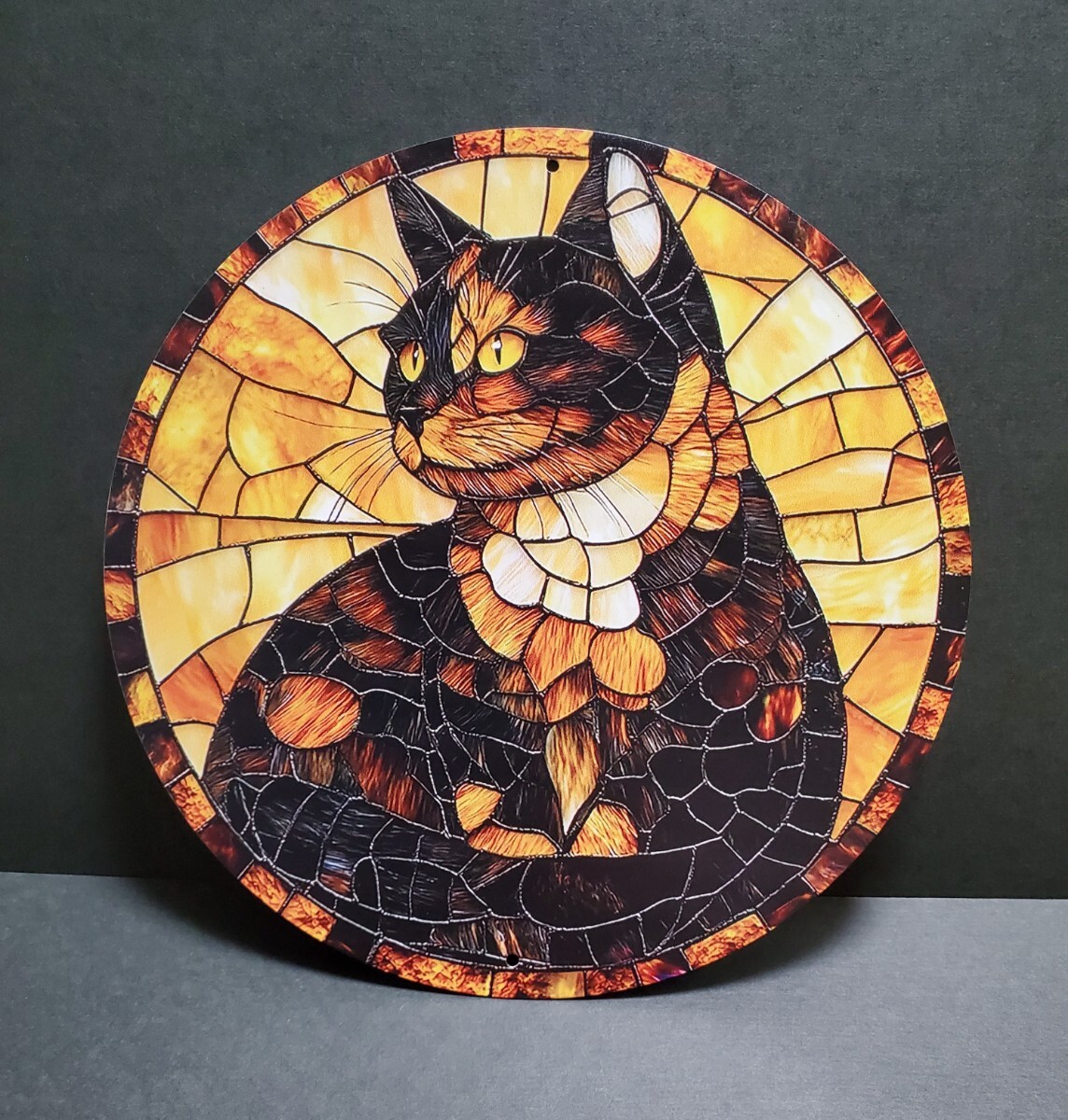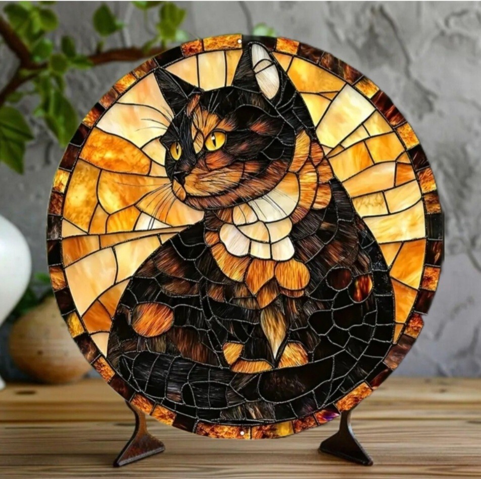 アルミニウムのメタルボードに3Dのプリント技術で描かれた猫のメタルアートです。